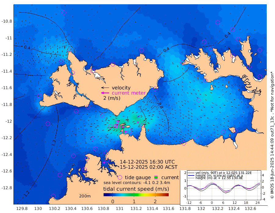 73cm/s 78T +4cm/s rms + 6cm/s 51T. Darwin_C1 52m 48cm/s 89T +4cm/s rms + 7cm/s -161T. Darwin_CW1 22m 51cm/s 73T +4cm/s rms + 8cm/s 61T. Darwin_CW2 34m 36cm/s 49T +3cm/s rms + 9cm/s 98T. Darwin_CW3 22m 80cm/s 89T +5cm/s rms + 7cm/s 88T. Darwin_C3 56m 43cm/s 64T +2cm/s rms + 9cm/s -126T. Darwin_CTbW 22m 13cm/s 75T +1cm/s rms + 1cm/s -47T. DARBGF 30m 7cm/s 84T +4cm/s rms + 3cm/s 80T. NRSDAR 19m 7cm Goodrich Bank 97cm Point Jenny 97cm Native Point 112cm Fish Reef 106cm Tapa Bay 54cm Point Fawcett (Offshore) 119cm Burge Point 96cm Munkunuwa 90cm Beagle A 115cm Parsons Bank 117cm Fenton Patches 110cm Hancox Shoal Area 117cm Nightcliff 131cm Darwin 118cm Charles Point Patches 105cm Glyde Point 90cm Chambers Bay 91cm Point Stuart 91cm Cape Hotham 78cm Christine Reef 96cm West Alligator Head 92cm East Field Island 83cm Two Hills Bay 76cm Camp Point 110cm Medina Inlet South 46cm South Barlow Point 26cm St. Asaph Bay 9cm Cape Van Dieman 15cm Snake Bay 14cm Cache Point 23cm Point Jahleel (Off) 55cm Cape Don 32cm Port Essington 31cm Smith Point - West 29cm NW Peacock Island 19cm North Of Jones Shoal 8cm Peacock Island 39cm Point David 33cm D'urville Point 39cm Copeland Island 41cm One Tree Point