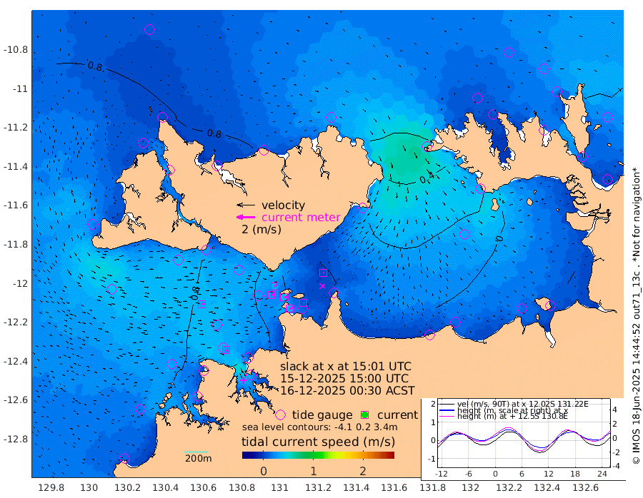 34cm/s 77T +4cm/s rms + 6cm/s 51T. Darwin_C1 52m 9cm/s 83T +4cm/s rms + 7cm/s -161T. Darwin_CW1 22m 30cm/s 74T +4cm/s rms + 8cm/s 61T. Darwin_CW2 34m 4cm/s 77T +3cm/s rms + 9cm/s 98T. Darwin_CW3 22m 35cm/s 88T +5cm/s rms + 7cm/s 88T. Darwin_C3 56m 32cm/s 64T +2cm/s rms + 9cm/s -126T. Darwin_CTbW 22m 31cm/s 91T +1cm/s rms + 1cm/s -47T. DARBGF 30m 30cm/s 121T +4cm/s rms + 3cm/s 80T. NRSDAR 19m 61cm Goodrich Bank 73cm Point Jenny 74cm Native Point 73cm Fish Reef 70cm Tapa Bay 76cm Point Fawcett (Offshore) 71cm Burge Point 66cm Munkunuwa 80cm Beagle A 68cm Parsons Bank 74cm Fenton Patches 59cm Hancox Shoal Area 73cm Nightcliff 70cm Darwin 75cm Charles Point Patches 36cm Glyde Point 2cm Chambers Bay -13cm Point Stuart 21cm Cape Hotham 5cm Christine Reef -22cm West Alligator Head -37cm East Field Island 13cm Two Hills Bay 13cm Camp Point 75cm Medina Inlet South 81cm South Barlow Point 71cm St. Asaph Bay 63cm Cape Van Dieman 70cm Snake Bay 62cm Cache Point 57cm Point Jahleel (Off) 51cm Cape Don 58cm Port Essington 62cm Smith Point - West 60cm NW Peacock Island 62cm North Of Jones Shoal 22cm Peacock Island 50cm Point David 62cm D'urville Point 47cm Copeland Island 55cm One Tree Point