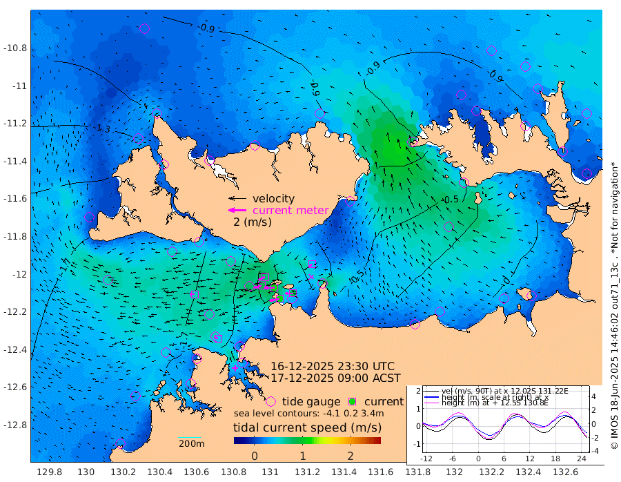 116cm/s -102T +4cm/s rms + 6cm/s 51T. Darwin_C1 52m 86cm/s -90T +4cm/s rms + 7cm/s -161T. Darwin_CW1 22m 83cm/s -107T +4cm/s rms + 8cm/s 61T. Darwin_CW2 34m 41cm/s -128T +3cm/s rms + 9cm/s 98T. Darwin_CW3 22m 116cm/s -91T +5cm/s rms + 7cm/s 88T. Darwin_C3 56m 77cm/s -115T +2cm/s rms + 9cm/s -126T. Darwin_CTbW 22m 54cm/s -93T +1cm/s rms + 1cm/s -47T. DARBGF 30m 44cm/s -61T +4cm/s rms + 3cm/s 80T. NRSDAR 19m -73cm Goodrich Bank -180cm Point Jenny -179cm Native Point -186cm Fish Reef -189cm Tapa Bay -150cm Point Fawcett (Offshore) -188cm Burge Point -174cm Munkunuwa -175cm Beagle A -175cm Parsons Bank -187cm Fenton Patches -171cm Hancox Shoal Area -198cm Nightcliff -191cm Darwin -191cm Charles Point Patches -126cm Glyde Point -75cm Chambers Bay -56cm Point Stuart -102cm Cape Hotham -69cm Christine Reef -53cm West Alligator Head -29cm East Field Island -77cm Two Hills Bay -74cm Camp Point -186cm Medina Inlet South -129cm South Barlow Point -115cm St. Asaph Bay -78cm Cape Van Dieman -85cm Snake Bay -82cm Cache Point -82cm Point Jahleel (Off) -90cm Cape Don -77cm Port Essington -82cm Smith Point - West -74cm NW Peacock Island -79cm North Of Jones Shoal -28cm Peacock Island -66cm Point David -78cm D'urville Point -64cm Copeland Island -72cm One Tree Point