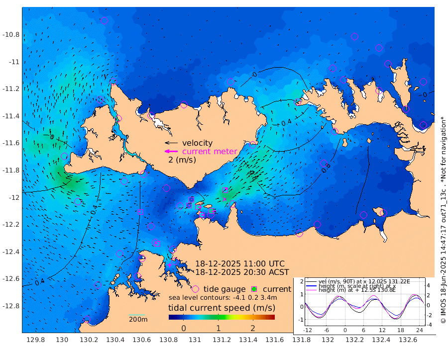 41cm/s 81T +4cm/s rms + 6cm/s 51T. Darwin_C1 52m 67cm/s 89T +4cm/s rms + 7cm/s -161T. Darwin_CW1 22m 16cm/s 77T +4cm/s rms + 8cm/s 61T. Darwin_CW2 34m 40cm/s 39T +3cm/s rms + 9cm/s 98T. Darwin_CW3 22m 52cm/s 93T +5cm/s rms + 7cm/s 88T. Darwin_C3 56m 10cm/s 72T +2cm/s rms + 9cm/s -126T. Darwin_CTbW 22m 24cm/s -77T +1cm/s rms + 1cm/s -47T. DARBGF 30m 33cm/s -51T +4cm/s rms + 3cm/s 80T. NRSDAR 19m 0cm Goodrich Bank 50cm Point Jenny 48cm Native Point 62cm Fish Reef 62cm Tapa Bay 25cm Point Fawcett (Offshore) 75cm Burge Point 46cm Munkunuwa 45cm Beagle A 62cm Parsons Bank 70cm Fenton Patches 72cm Hancox Shoal Area 70cm Nightcliff 87cm Darwin 75cm Charles Point Patches 95cm Glyde Point 121cm Chambers Bay 135cm Point Stuart 100cm Cape Hotham 110cm Christine Reef 151cm West Alligator Head 169cm East Field Island 102cm Two Hills Bay 98cm Camp Point 62cm Medina Inlet South 7cm South Barlow Point 7cm St. Asaph Bay -4cm Cape Van Dieman -3cm Snake Bay 5cm Cache Point 14cm Point Jahleel (Off) 35cm Cape Don 7cm Port Essington 3cm Smith Point - West 2cm NW Peacock Island 3cm North Of Jones Shoal 0cm Peacock Island 3cm Point David -2cm D'urville Point 3cm Copeland Island 8cm One Tree Point