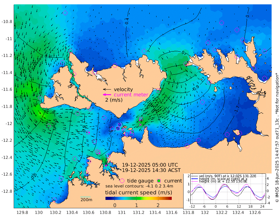 34cm/s -100T +4cm/s rms + 6cm/s 51T. Darwin_C1 52m 61cm/s -92T +4cm/s rms + 7cm/s -161T. Darwin_CW1 22m 3cm/s -87T +4cm/s rms + 8cm/s 61T. Darwin_CW2 34m 61cm/s -143T +3cm/s rms + 9cm/s 98T. Darwin_CW3 22m 46cm/s -88T +5cm/s rms + 7cm/s 88T. Darwin_C3 56m 5cm/s 52T +2cm/s rms + 9cm/s -126T. Darwin_CTbW 22m 52cm/s 97T +1cm/s rms + 1cm/s -47T. DARBGF 30m 59cm/s 127T +4cm/s rms + 3cm/s 80T. NRSDAR 19m 40cm Goodrich Bank -9cm Point Jenny -8cm Native Point -31cm Fish Reef -28cm Tapa Bay 25cm Point Fawcett (Offshore) -51cm Burge Point -11cm Munkunuwa 1cm Beagle A -51cm Parsons Bank -40cm Fenton Patches -59cm Hancox Shoal Area -50cm Nightcliff -81cm Darwin -57cm Charles Point Patches -105cm Glyde Point -146cm Chambers Bay -174cm Point Stuart -118cm Cape Hotham -126cm Christine Reef -193cm West Alligator Head -221cm East Field Island -126cm Two Hills Bay -121cm Camp Point -36cm Medina Inlet South 34cm South Barlow Point 44cm St. Asaph Bay 43cm Cape Van Dieman 34cm Snake Bay 32cm Cache Point 14cm Point Jahleel (Off) -33cm Cape Don 3cm Port Essington 14cm Smith Point - West 6cm NW Peacock Island 14cm North Of Jones Shoal 3cm Peacock Island -28cm Point David 7cm D'urville Point -30cm Copeland Island -28cm One Tree Point