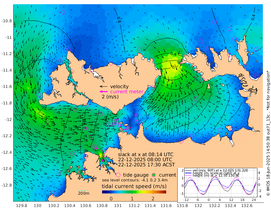 121cm/s 78T +4cm/s rms + 6cm/s 51T. Darwin_C1 52m 73cm/s 87T +4cm/s rms + 7cm/s -161T. Darwin_CW1 22m 59cm/s 74T +4cm/s rms + 8cm/s 61T. Darwin_CW2 34m 19cm/s 93T +3cm/s rms + 9cm/s 98T. Darwin_CW3 22m 49cm/s 87T +5cm/s rms + 7cm/s 88T. Darwin_C3 56m 85cm/s 63T +2cm/s rms + 9cm/s -126T. Darwin_CTbW 22m 80cm/s 92T +1cm/s rms + 1cm/s -47T. DARBGF 30m 82cm/s 121T +4cm/s rms + 3cm/s 80T. NRSDAR 19m 71cm Goodrich Bank 144cm Point Jenny 145cm Native Point 133cm Fish Reef 137cm Tapa Bay 125cm Point Fawcett (Offshore) 134cm Burge Point 153cm Munkunuwa 147cm Beagle A 119cm Parsons Bank 137cm Fenton Patches 100cm Hancox Shoal Area 128cm Nightcliff 104cm Darwin 117cm Charles Point Patches 18cm Glyde Point -80cm Chambers Bay -111cm Point Stuart -21cm Cape Hotham -54cm Christine Reef -128cm West Alligator Head -174cm East Field Island -55cm Two Hills Bay -48cm Camp Point 133cm Medina Inlet South 124cm South Barlow Point 113cm St. Asaph Bay 78cm Cape Van Dieman 74cm Snake Bay 69cm Cache Point 56cm Point Jahleel (Off) 30cm Cape Don 44cm Port Essington 55cm Smith Point - West 42cm NW Peacock Island 47cm North Of Jones Shoal 15cm Peacock Island 6cm Point David 47cm D'urville Point 2cm Copeland Island 10cm One Tree Point