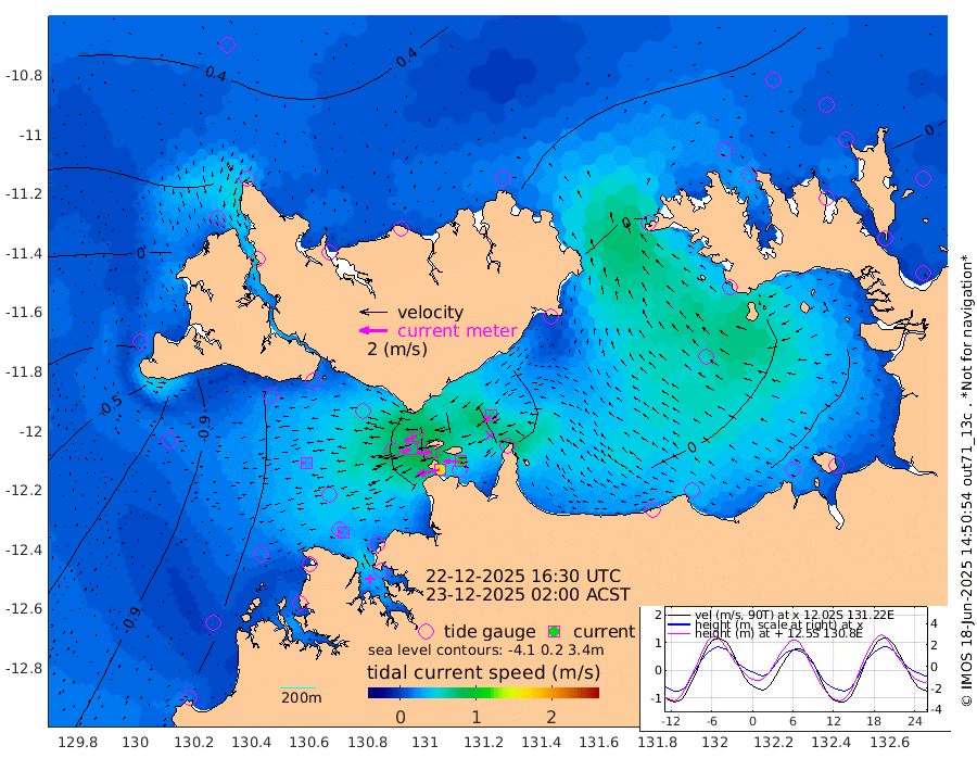165cm/s -102T +4cm/s rms + 6cm/s 51T. Darwin_C1 52m 116cm/s -90T +4cm/s rms + 7cm/s -161T. Darwin_CW1 22m 75cm/s -108T +4cm/s rms + 8cm/s 61T. Darwin_CW2 34m 72cm/s -133T +3cm/s rms + 9cm/s 98T. Darwin_CW3 22m 94cm/s -91T +5cm/s rms + 7cm/s 88T. Darwin_C3 56m 95cm/s -115T +2cm/s rms + 9cm/s -126T. Darwin_CTbW 22m 32cm/s -93T +1cm/s rms + 1cm/s -47T. DARBGF 30m 29cm/s -73T +4cm/s rms + 3cm/s 80T. NRSDAR 19m 49cm Goodrich Bank -88cm Point Jenny -86cm Native Point -96cm Fish Reef -107cm Tapa Bay -17cm Point Fawcett (Offshore) -114cm Burge Point -115cm Munkunuwa -67cm Beagle A -125cm Parsons Bank -111cm Fenton Patches -121cm Hancox Shoal Area -137cm Nightcliff -128cm Darwin -104cm Charles Point Patches -75cm Glyde Point -43cm Chambers Bay -32cm Point Stuart -58cm Cape Hotham -39cm Christine Reef -36cm West Alligator Head -16cm East Field Island -32cm Two Hills Bay -28cm Camp Point -105cm Medina Inlet South -15cm South Barlow Point 10cm St. Asaph Bay 45cm Cape Van Dieman 39cm Snake Bay 46cm Cache Point 27cm Point Jahleel (Off) -5cm Cape Don 22cm Port Essington 15cm Smith Point - West 20cm NW Peacock Island 31cm North Of Jones Shoal 9cm Peacock Island 3cm Point David 13cm D'urville Point -2cm Copeland Island 7cm One Tree Point
