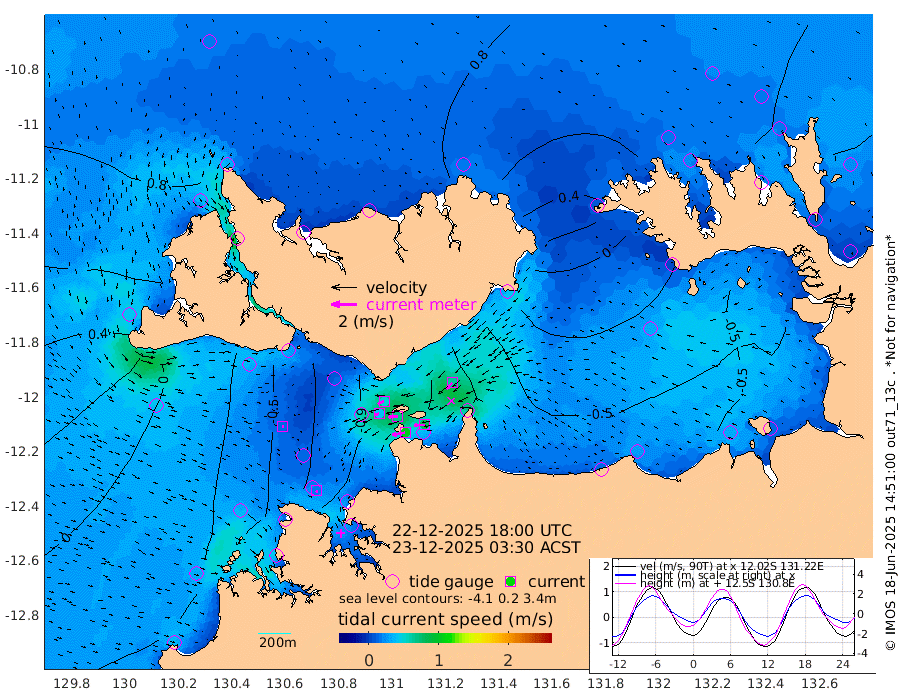 103cm/s -100T +4cm/s rms + 6cm/s 51T. Darwin_C1 52m 84cm/s -92T +4cm/s rms + 7cm/s -161T. Darwin_CW1 22m 40cm/s -107T +4cm/s rms + 8cm/s 61T. Darwin_CW2 34m 67cm/s -136T +3cm/s rms + 9cm/s 98T. Darwin_CW3 22m 72cm/s -91T +5cm/s rms + 7cm/s 88T. Darwin_C3 56m 53cm/s -115T +2cm/s rms + 9cm/s -126T. Darwin_CTbW 22m 14cm/s 111T +1cm/s rms + 1cm/s -47T. DARBGF 30m 17cm/s 149T +4cm/s rms + 3cm/s 80T. NRSDAR 19m 82cm Goodrich Bank -25cm Point Jenny -21cm Native Point -38cm Fish Reef -42cm Tapa Bay 36cm Point Fawcett (Offshore) -54cm Burge Point -44cm Munkunuwa -6cm Beagle A -62cm Parsons Bank -52cm Fenton Patches -70cm Hancox Shoal Area -79cm Nightcliff -75cm Darwin -46cm Charles Point Patches -67cm Glyde Point -94cm Chambers Bay -93cm Point Stuart -69cm Cape Hotham -79cm Christine Reef -110cm West Alligator Head -117cm East Field Island -63cm Two Hills Bay -53cm Camp Point -44cm Medina Inlet South 44cm South Barlow Point 59cm St. Asaph Bay 83cm Cape Van Dieman 79cm Snake Bay 77cm Cache Point 54cm Point Jahleel (Off) 13cm Cape Don 52cm Port Essington 49cm Smith Point - West 52cm NW Peacock Island 58cm North Of Jones Shoal 19cm Peacock Island 37cm Point David 49cm D'urville Point 30cm Copeland Island 35cm One Tree Point