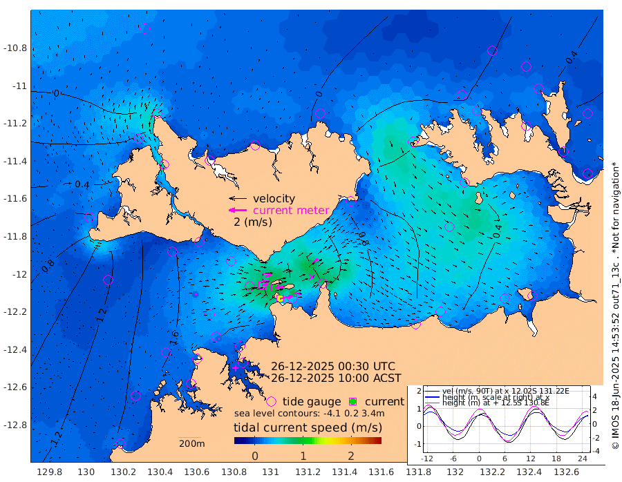 146cm/s 78T +4cm/s rms + 6cm/s 51T. Darwin_C1 52m 86cm/s 92T +4cm/s rms + 7cm/s -161T. Darwin_CW1 22m 66cm/s 73T +4cm/s rms + 8cm/s 61T. Darwin_CW2 34m 85cm/s 44T +3cm/s rms + 9cm/s 98T. Darwin_CW3 22m 98cm/s 89T +5cm/s rms + 7cm/s 88T. Darwin_C3 56m 71cm/s 65T +2cm/s rms + 9cm/s -126T. Darwin_CTbW 22m 16cm/s 80T +1cm/s rms + 1cm/s -47T. DARBGF 30m 14cm/s 91T +4cm/s rms + 3cm/s 80T. NRSDAR 19m -22cm Goodrich Bank 108cm Point Jenny 107cm Native Point 108cm Fish Reef 133cm Tapa Bay 35cm Point Fawcett (Offshore) 131cm Burge Point 120cm Munkunuwa 76cm Beagle A 150cm Parsons Bank 124cm Fenton Patches 152cm Hancox Shoal Area 146cm Nightcliff 156cm Darwin 137cm Charles Point Patches 110cm Glyde Point 86cm Chambers Bay 77cm Point Stuart 93cm Cape Hotham 77cm Christine Reef 80cm West Alligator Head 63cm East Field Island 73cm Two Hills Bay 71cm Camp Point 120cm Medina Inlet South 30cm South Barlow Point 4cm St. Asaph Bay -17cm Cape Van Dieman -11cm Snake Bay -15cm Cache Point 3cm Point Jahleel (Off) 43cm Cape Don 21cm Port Essington 24cm Smith Point - West 25cm NW Peacock Island 0cm North Of Jones Shoal 3cm Peacock Island 62cm Point David 34cm D'urville Point 66cm Copeland Island 49cm One Tree Point
