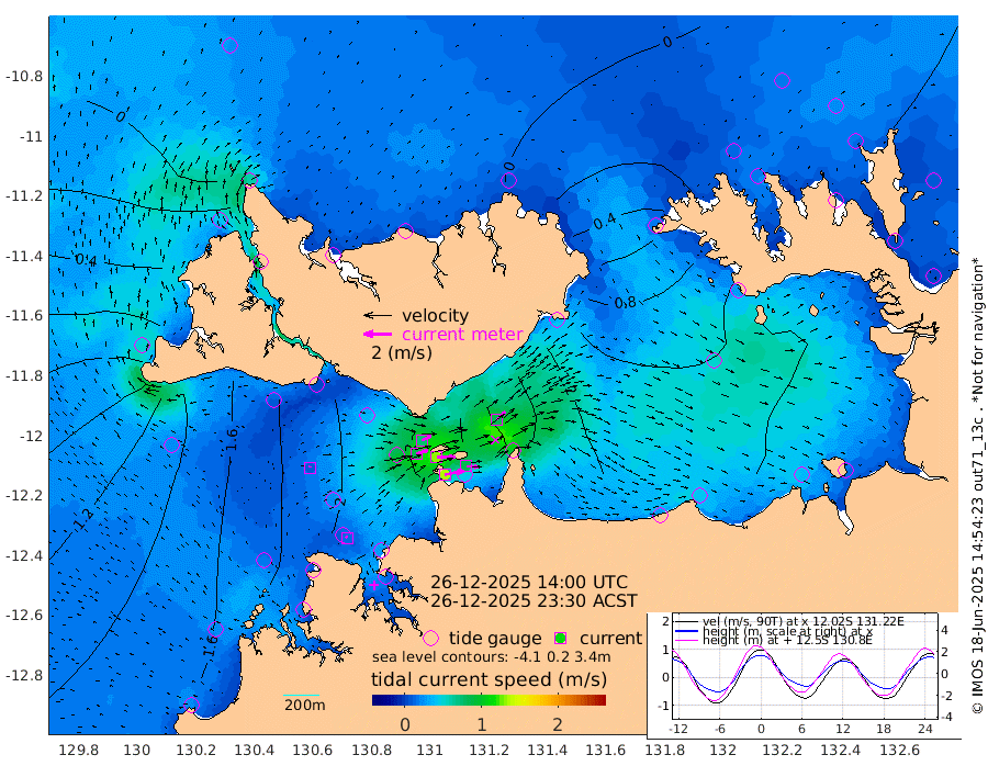 138cm/s 78T +4cm/s rms + 6cm/s 51T. Darwin_C1 52m 84cm/s 93T +4cm/s rms + 7cm/s -161T. Darwin_CW1 22m 85cm/s 71T +4cm/s rms + 8cm/s 61T. Darwin_CW2 34m 83cm/s 47T +3cm/s rms + 9cm/s 98T. Darwin_CW3 22m 132cm/s 90T +5cm/s rms + 7cm/s 88T. Darwin_C3 56m 73cm/s 66T +2cm/s rms + 9cm/s -126T. Darwin_CTbW 22m 8cm/s 16T +1cm/s rms + 1cm/s -47T. DARBGF 30m 13cm/s -19T +4cm/s rms + 3cm/s 80T. NRSDAR 19m -16cm Goodrich Bank 139cm Point Jenny 139cm Native Point 145cm Fish Reef 158cm Tapa Bay 52cm Point Fawcett (Offshore) 181cm Burge Point 146cm Munkunuwa 117cm Beagle A 174cm Parsons Bank 173cm Fenton Patches 175cm Hancox Shoal Area 192cm Nightcliff 196cm Darwin 165cm Charles Point Patches 159cm Glyde Point 157cm Chambers Bay 151cm Point Stuart 142cm Cape Hotham 148cm Christine Reef 166cm West Alligator Head 165cm East Field Island 128cm Two Hills Bay 126cm Camp Point 157cm Medina Inlet South 42cm South Barlow Point 16cm St. Asaph Bay -16cm Cape Van Dieman -7cm Snake Bay -10cm Cache Point 10cm Point Jahleel (Off) 60cm Cape Don 11cm Port Essington 13cm Smith Point - West 9cm NW Peacock Island -3cm North Of Jones Shoal 0cm Peacock Island 24cm Point David 13cm D'urville Point 26cm Copeland Island 25cm One Tree Point