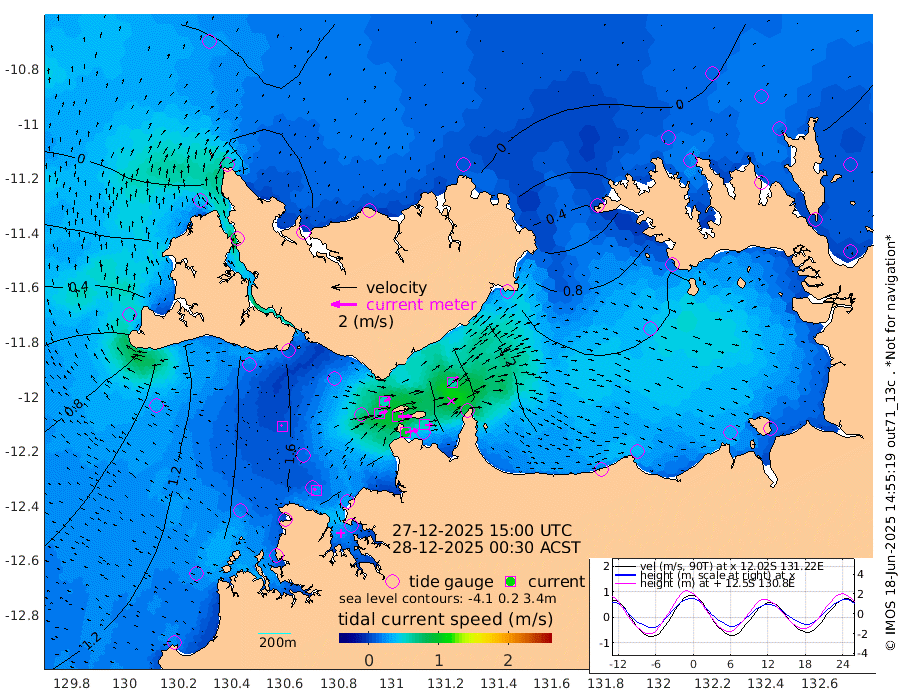 99cm/s 78T +4cm/s rms + 6cm/s 51T. Darwin_C1 52m 58cm/s 92T +4cm/s rms + 7cm/s -161T. Darwin_CW1 22m 65cm/s 71T +4cm/s rms + 8cm/s 61T. Darwin_CW2 34m 62cm/s 47T +3cm/s rms + 9cm/s 98T. Darwin_CW3 22m 104cm/s 90T +5cm/s rms + 7cm/s 88T. Darwin_C3 56m 54cm/s 65T +2cm/s rms + 9cm/s -126T. Darwin_CTbW 22m 11cm/s -48T +1cm/s rms + 1cm/s -47T. DARBGF 30m 21cm/s -38T +4cm/s rms + 3cm/s 80T. NRSDAR 19m -28cm Goodrich Bank 105cm Point Jenny 104cm Native Point 110cm Fish Reef 122cm Tapa Bay 26cm Point Fawcett (Offshore) 143cm Burge Point 108cm Munkunuwa 85cm Beagle A 138cm Parsons Bank 136cm Fenton Patches 141cm Hancox Shoal Area 153cm Nightcliff 157cm Darwin 126cm Charles Point Patches 137cm Glyde Point 146cm Chambers Bay 146cm Point Stuart 127cm Cape Hotham 136cm Christine Reef 162cm West Alligator Head 166cm East Field Island 118cm Two Hills Bay 115cm Camp Point 119cm Medina Inlet South 18cm South Barlow Point -5cm St. Asaph Bay -28cm Cape Van Dieman -19cm Snake Bay -22cm Cache Point -1cm Point Jahleel (Off) 47cm Cape Don 1cm Port Essington 1cm Smith Point - West 0cm NW Peacock Island -14cm North Of Jones Shoal -3cm Peacock Island 21cm Point David 4cm D'urville Point 22cm Copeland Island 20cm One Tree Point