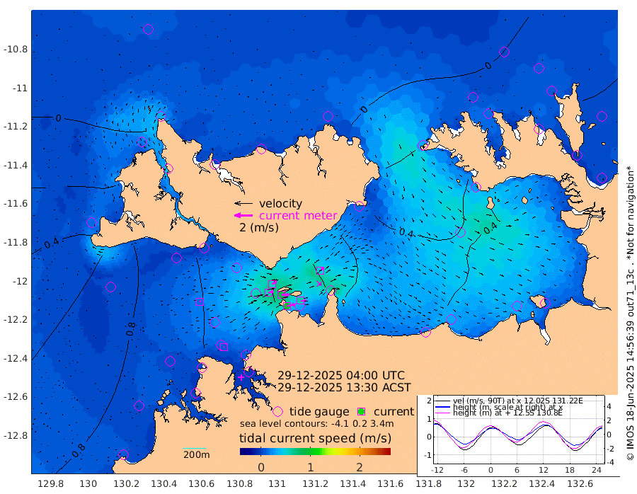 96cm/s 78T +4cm/s rms + 6cm/s 51T. Darwin_C1 52m 60cm/s 90T +4cm/s rms + 7cm/s -161T. Darwin_CW1 22m 56cm/s 73T +4cm/s rms + 8cm/s 61T. Darwin_CW2 34m 46cm/s 49T +3cm/s rms + 9cm/s 98T. Darwin_CW3 22m 84cm/s 89T +5cm/s rms + 7cm/s 88T. Darwin_C3 56m 56cm/s 65T +2cm/s rms + 9cm/s -126T. Darwin_CTbW 22m 13cm/s 76T +1cm/s rms + 1cm/s -47T. DARBGF 30m 7cm/s 79T +4cm/s rms + 3cm/s 80T. NRSDAR 19m -19cm Goodrich Bank 104cm Point Jenny 100cm Native Point 99cm Fish Reef 115cm Tapa Bay 39cm Point Fawcett (Offshore) 115cm Burge Point 98cm Munkunuwa 78cm Beagle A 119cm Parsons Bank 112cm Fenton Patches 127cm Hancox Shoal Area 129cm Nightcliff 123cm Darwin 110cm Charles Point Patches 98cm Glyde Point 101cm Chambers Bay 89cm Point Stuart 89cm Cape Hotham 94cm Christine Reef 97cm West Alligator Head 88cm East Field Island 77cm Two Hills Bay 71cm Camp Point 100cm Medina Inlet South 22cm South Barlow Point 9cm St. Asaph Bay -16cm Cape Van Dieman -18cm Snake Bay -9cm Cache Point 4cm Point Jahleel (Off) 39cm Cape Don 10cm Port Essington 17cm Smith Point - West 14cm NW Peacock Island -1cm North Of Jones Shoal 1cm Peacock Island 30cm Point David 19cm D'urville Point 35cm Copeland Island 25cm One Tree Point