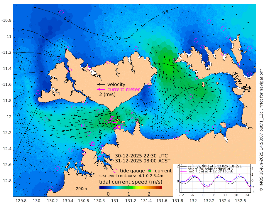 143cm/s -102T +4cm/s rms + 6cm/s 51T. Darwin_C1 52m 93cm/s -90T +4cm/s rms + 7cm/s -161T. Darwin_CW1 22m 89cm/s -107T +4cm/s rms + 8cm/s 61T. Darwin_CW2 34m 56cm/s -131T +3cm/s rms + 9cm/s 98T. Darwin_CW3 22m 125cm/s -91T +5cm/s rms + 7cm/s 88T. Darwin_C3 56m 91cm/s -116T +2cm/s rms + 9cm/s -126T. Darwin_CTbW 22m 51cm/s -94T +1cm/s rms + 1cm/s -47T. DARBGF 30m 42cm/s -63T +4cm/s rms + 3cm/s 80T. NRSDAR 19m -75cm Goodrich Bank -214cm Point Jenny -212cm Native Point -217cm Fish Reef -223cm Tapa Bay -157cm Point Fawcett (Offshore) -230cm Burge Point -202cm Munkunuwa -204cm Beagle A -217cm Parsons Bank -229cm Fenton Patches -211cm Hancox Shoal Area -226cm Nightcliff -228cm Darwin -224cm Charles Point Patches -162cm Glyde Point -109cm Chambers Bay -94cm Point Stuart -134cm Cape Hotham -109cm Christine Reef -93cm West Alligator Head -69cm East Field Island -109cm Two Hills Bay -102cm Camp Point -213cm Medina Inlet South -137cm South Barlow Point -116cm St. Asaph Bay -80cm Cape Van Dieman -83cm Snake Bay -87cm Cache Point -90cm Point Jahleel (Off) -109cm Cape Don -90cm Port Essington -97cm Smith Point - West -91cm NW Peacock Island -79cm North Of Jones Shoal -28cm Peacock Island -87cm Point David -97cm D'urville Point -86cm Copeland Island -88cm One Tree Point