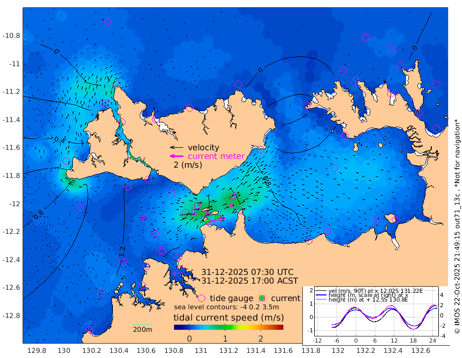 116cm/s 79T +4cm/s rms + 6cm/s 51T. Darwin_C1 52m 108cm/s 92T +4cm/s rms + 7cm/s -161T. Darwin_CW1 22m 59cm/s 73T +4cm/s rms + 8cm/s 61T. Darwin_CW2 34m 70cm/s 43T +3cm/s rms + 9cm/s 98T. Darwin_CW3 22m 102cm/s 90T +5cm/s rms + 7cm/s 88T. Darwin_C3 56m 59cm/s 66T +2cm/s rms + 9cm/s -126T. Darwin_CTbW 22m 8cm/s 42T +1cm/s rms + 1cm/s -47T. DARBGF 30m 5cm/s -2T +4cm/s rms + 3cm/s 80T. NRSDAR 19m -8cm Goodrich Bank 135cm Point Jenny 131cm Native Point 134cm Fish Reef 147cm Tapa Bay 60cm Point Fawcett (Offshore) 159cm Burge Point 121cm Munkunuwa 117cm Beagle A 141cm Parsons Bank 158cm Fenton Patches 156cm Hancox Shoal Area 169cm Nightcliff 162cm Darwin 148cm Charles Point Patches 140cm Glyde Point 145cm Chambers Bay 137cm Point Stuart 127cm Cape Hotham 142cm Christine Reef 151cm West Alligator Head 156cm East Field Island 112cm Two Hills Bay 116cm Camp Point 133cm Medina Inlet South 35cm South Barlow Point 25cm St. Asaph Bay -8cm Cape Van Dieman -11cm Snake Bay 2cm Cache Point 15cm Point Jahleel (Off) 51cm Cape Don 10cm Port Essington 13cm Smith Point - West 8cm NW Peacock Island 2cm North Of Jones Shoal 0cm Peacock Island 12cm Point David 10cm D'urville Point 16cm Copeland Island 13cm One Tree Point