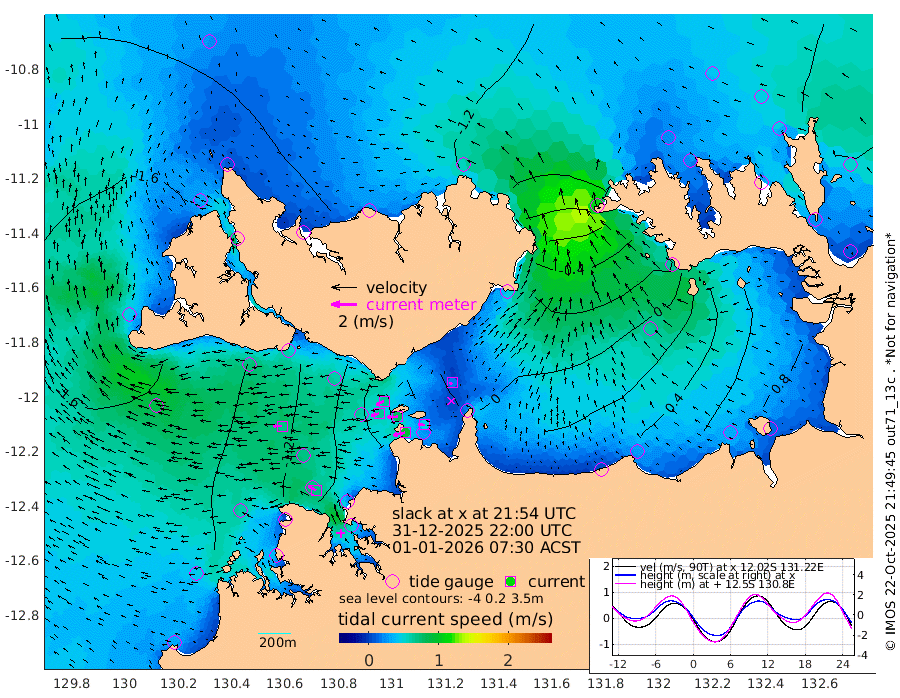 95cm/s -102T +4cm/s rms + 6cm/s 51T. Darwin_C1 52m 46cm/s -88T +4cm/s rms + 7cm/s -161T. Darwin_CW1 22m 64cm/s -105T +4cm/s rms + 8cm/s 61T. Darwin_CW2 34m 20cm/s -118T +3cm/s rms + 9cm/s 98T. Darwin_CW3 22m 81cm/s -92T +5cm/s rms + 7cm/s 88T. Darwin_C3 56m 66cm/s -116T +2cm/s rms + 9cm/s -126T. Darwin_CTbW 22m 70cm/s -90T +1cm/s rms + 1cm/s -47T. DARBGF 30m 68cm/s -58T +4cm/s rms + 3cm/s 80T. NRSDAR 19m -117cm Goodrich Bank -174cm Point Jenny -173cm Native Point -173cm Fish Reef -169cm Tapa Bay -174cm Point Fawcett (Offshore) -163cm Burge Point -163cm Munkunuwa -176cm Beagle A -151cm Parsons Bank -162cm Fenton Patches -136cm Hancox Shoal Area -152cm Nightcliff -149cm Darwin -166cm Charles Point Patches -80cm Glyde Point -10cm Chambers Bay 13cm Point Stuart -52cm Cape Hotham -17cm Christine Reef 26cm West Alligator Head 61cm East Field Island -32cm Two Hills Bay -24cm Camp Point -167cm Medina Inlet South -158cm South Barlow Point -150cm St. Asaph Bay -123cm Cape Van Dieman -123cm Snake Bay -125cm Cache Point -110cm Point Jahleel (Off) -95cm Cape Don -106cm Port Essington -113cm Smith Point - West -104cm NW Peacock Island -108cm North Of Jones Shoal -37cm Peacock Island -76cm Point David -107cm D'urville Point -70cm Copeland Island -83cm One Tree Point