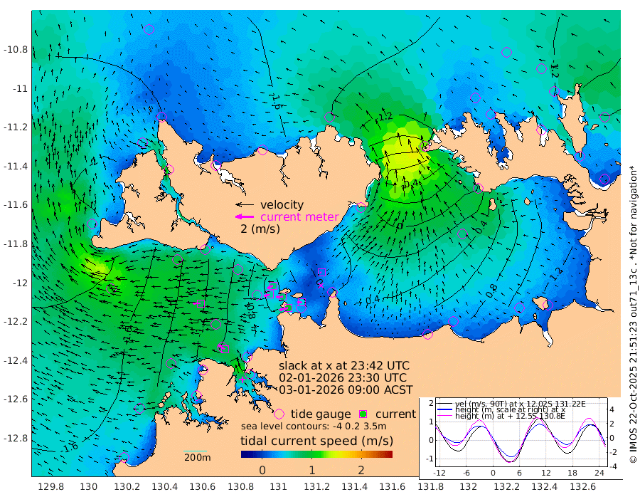 98cm/s -103T +4cm/s rms + 6cm/s 51T. Darwin_C1 52m 47cm/s -86T +4cm/s rms + 7cm/s -161T. Darwin_CW1 22m 63cm/s -106T +4cm/s rms + 8cm/s 61T. Darwin_CW2 34m 16cm/s -99T +3cm/s rms + 9cm/s 98T. Darwin_CW3 22m 73cm/s -92T +5cm/s rms + 7cm/s 88T. Darwin_C3 56m 68cm/s -116T +2cm/s rms + 9cm/s -126T. Darwin_CTbW 22m 83cm/s -89T +1cm/s rms + 1cm/s -47T. DARBGF 30m 83cm/s -57T +4cm/s rms + 3cm/s 80T. NRSDAR 19m -142cm Goodrich Bank -179cm Point Jenny -179cm Native Point -176cm Fish Reef -169cm Tapa Bay -197cm Point Fawcett (Offshore) -160cm Burge Point -169cm Munkunuwa -185cm Beagle A -140cm Parsons Bank -157cm Fenton Patches -121cm Hancox Shoal Area -144cm Nightcliff -138cm Darwin -164cm Charles Point Patches -58cm Glyde Point 32cm Chambers Bay 57cm Point Stuart -25cm Cape Hotham 19cm Christine Reef 75cm West Alligator Head 118cm East Field Island -2cm Two Hills Bay 1cm Camp Point -171cm Medina Inlet South -181cm South Barlow Point -177cm St. Asaph Bay -149cm Cape Van Dieman -148cm Snake Bay -146cm Cache Point -124cm Point Jahleel (Off) -95cm Cape Don -116cm Port Essington -120cm Smith Point - West -109cm NW Peacock Island -124cm North Of Jones Shoal -41cm Peacock Island -69cm Point David -111cm D'urville Point -61cm Copeland Island -81cm One Tree Point