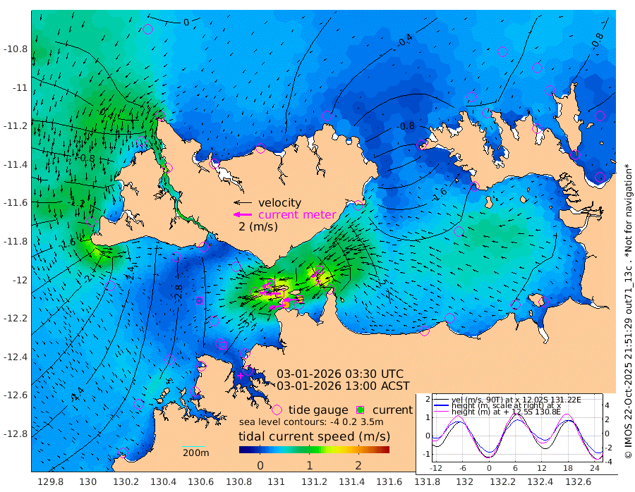 192cm/s -101T +4cm/s rms + 6cm/s 51T. Darwin_C1 52m 174cm/s -92T +4cm/s rms + 7cm/s -161T. Darwin_CW1 22m 83cm/s -106T +4cm/s rms + 8cm/s 61T. Darwin_CW2 34m 115cm/s -137T +3cm/s rms + 9cm/s 98T. Darwin_CW3 22m 150cm/s -90T +5cm/s rms + 7cm/s 88T. Darwin_C3 56m 102cm/s -116T +2cm/s rms + 9cm/s -126T. Darwin_CTbW 22m 10cm/s 165T +1cm/s rms + 1cm/s -47T. DARBGF 30m 18cm/s 152T +4cm/s rms + 3cm/s 80T. NRSDAR 19m -5cm Goodrich Bank -215cm Point Jenny -213cm Native Point -229cm Fish Reef -245cm Tapa Bay -100cm Point Fawcett (Offshore) -277cm Burge Point -208cm Munkunuwa -186cm Beagle A -262cm Parsons Bank -263cm Fenton Patches -268cm Hancox Shoal Area -274cm Nightcliff -303cm Darwin -272cm Charles Point Patches -253cm Glyde Point -236cm Chambers Bay -241cm Point Stuart -230cm Cape Hotham -224cm Christine Reef -258cm West Alligator Head -262cm East Field Island -204cm Two Hills Bay -212cm Camp Point -237cm Medina Inlet South -78cm South Barlow Point -44cm St. Asaph Bay -7cm Cape Van Dieman -16cm Snake Bay -19cm Cache Point -43cm Point Jahleel (Off) -115cm Cape Don -57cm Port Essington -52cm Smith Point - West -53cm NW Peacock Island -29cm North Of Jones Shoal -13cm Peacock Island -88cm Point David -58cm D'urville Point -91cm Copeland Island -85cm One Tree Point