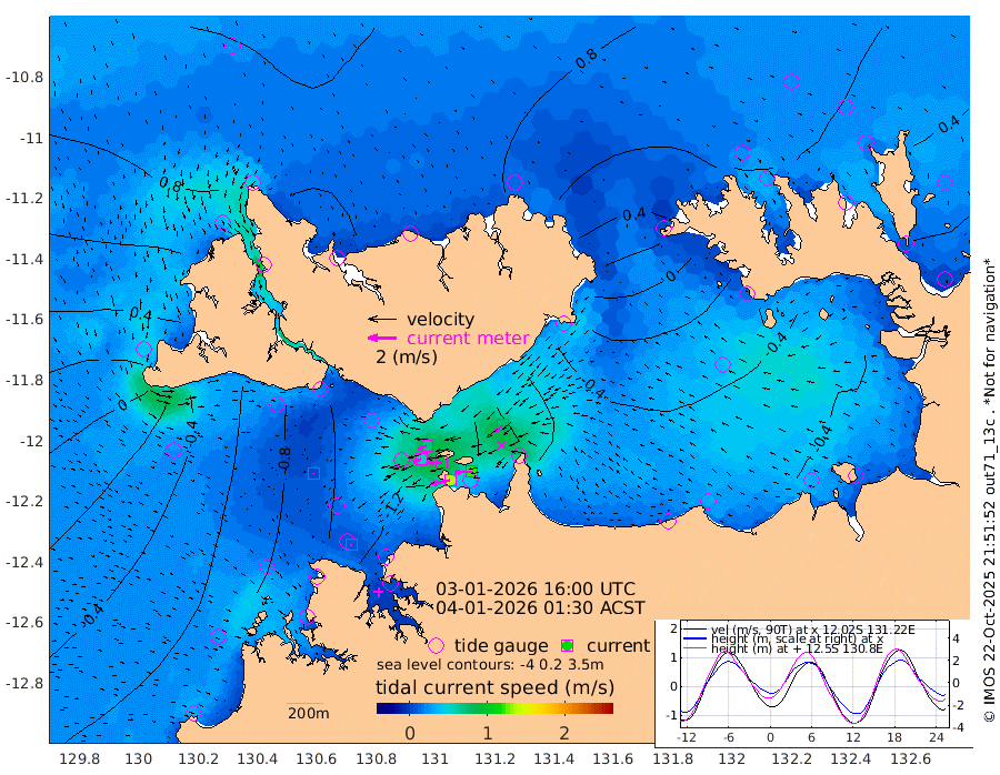 135cm/s -101T +4cm/s rms + 6cm/s 51T. Darwin_C1 52m 121cm/s -91T +4cm/s rms + 7cm/s -161T. Darwin_CW1 22m 56cm/s -107T +4cm/s rms + 8cm/s 61T. Darwin_CW2 34m 76cm/s -135T +3cm/s rms + 9cm/s 98T. Darwin_CW3 22m 90cm/s -91T +5cm/s rms + 7cm/s 88T. Darwin_C3 56m 68cm/s -116T +2cm/s rms + 9cm/s -126T. Darwin_CTbW 22m 5cm/s 154T +1cm/s rms + 1cm/s -47T. DARBGF 30m 8cm/s -173T +4cm/s rms + 3cm/s 80T. NRSDAR 19m 89cm Goodrich Bank -64cm Point Jenny -62cm Native Point -75cm Fish Reef -86cm Tapa Bay 25cm Point Fawcett (Offshore) -102cm Burge Point -91cm Munkunuwa -40cm Beagle A -106cm Parsons Bank -98cm Fenton Patches -107cm Hancox Shoal Area -112cm Nightcliff -114cm Darwin -80cm Charles Point Patches -88cm Glyde Point -86cm Chambers Bay -91cm Point Stuart -80cm Cape Hotham -77cm Christine Reef -106cm West Alligator Head -103cm East Field Island -61cm Two Hills Bay -56cm Camp Point -79cm Medina Inlet South 35cm South Barlow Point 56cm St. Asaph Bay 87cm Cape Van Dieman 86cm Snake Bay 84cm Cache Point 60cm Point Jahleel (Off) 15cm Cape Don 58cm Port Essington 55cm Smith Point - West 58cm NW Peacock Island 77cm North Of Jones Shoal 25cm Peacock Island 35cm Point David 53cm D'urville Point 28cm Copeland Island 42cm One Tree Point