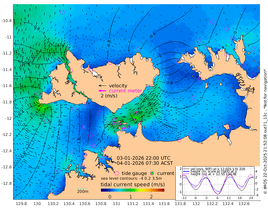 126cm/s 79T +4cm/s rms + 6cm/s 51T. Darwin_C1 52m 102cm/s 92T +4cm/s rms + 7cm/s -161T. Darwin_CW1 22m 54cm/s 69T +4cm/s rms + 8cm/s 61T. Darwin_CW2 34m 88cm/s 42T +3cm/s rms + 9cm/s 98T. Darwin_CW3 22m 86cm/s 90T +5cm/s rms + 7cm/s 88T. Darwin_C3 56m 57cm/s 64T +2cm/s rms + 9cm/s -126T. Darwin_CTbW 22m 24cm/s -77T +1cm/s rms + 1cm/s -47T. DARBGF 30m 34cm/s -49T +4cm/s rms + 3cm/s 80T. NRSDAR 19m -85cm Goodrich Bank 66cm Point Jenny 64cm Native Point 82cm Fish Reef 94cm Tapa Bay -32cm Point Fawcett (Offshore) 117cm Burge Point 80cm Munkunuwa 37cm Beagle A 130cm Parsons Bank 109cm Fenton Patches 134cm Hancox Shoal Area 123cm Nightcliff 148cm Darwin 111cm Charles Point Patches 133cm Glyde Point 140cm Chambers Bay 157cm Point Stuart 129cm Cape Hotham 124cm Christine Reef 171cm West Alligator Head 179cm East Field Island 115cm Two Hills Bay 113cm Camp Point 88cm Medina Inlet South -36cm South Barlow Point -67cm St. Asaph Bay -82cm Cape Van Dieman -75cm Snake Bay -75cm Cache Point -45cm Point Jahleel (Off) 23cm Cape Don -21cm Port Essington -25cm Smith Point - West -19cm NW Peacock Island -52cm North Of Jones Shoal -14cm Peacock Island 37cm Point David -11cm D'urville Point 45cm Copeland Island 23cm One Tree Point