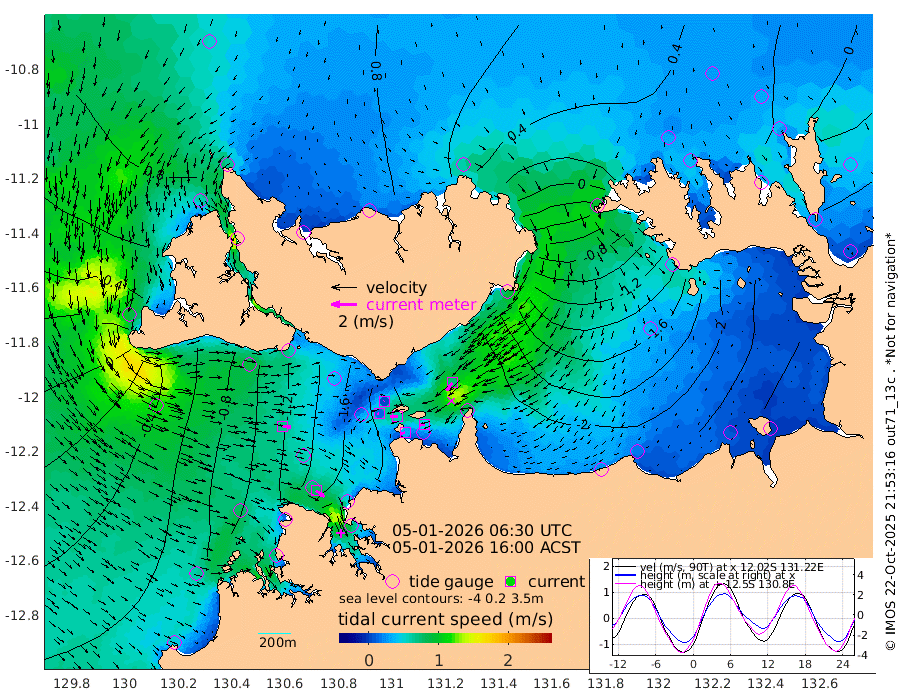 33cm/s -102T +4cm/s rms + 6cm/s 51T. Darwin_C1 52m 45cm/s -93T +4cm/s rms + 7cm/s -161T. Darwin_CW1 22m 12cm/s -105T +4cm/s rms + 8cm/s 61T. Darwin_CW2 34m 75cm/s -143T +3cm/s rms + 9cm/s 98T. Darwin_CW3 22m 60cm/s -89T +5cm/s rms + 7cm/s 88T. Darwin_C3 56m 3cm/s 41T +2cm/s rms + 9cm/s -126T. Darwin_CTbW 22m 70cm/s 97T +1cm/s rms + 1cm/s -47T. DARBGF 30m 79cm/s 127T +4cm/s rms + 3cm/s 80T. NRSDAR 19m 68cm Goodrich Bank -27cm Point Jenny -24cm Native Point -36cm Fish Reef -51cm Tapa Bay 48cm Point Fawcett (Offshore) -78cm Burge Point -19cm Munkunuwa 1cm Beagle A -80cm Parsons Bank -63cm Fenton Patches -99cm Hancox Shoal Area -83cm Nightcliff -112cm Darwin -79cm Charles Point Patches -143cm Glyde Point -212cm Chambers Bay -232cm Point Stuart -156cm Cape Hotham -191cm Christine Reef -258cm West Alligator Head -293cm East Field Island -164cm Two Hills Bay -167cm Camp Point -46cm Medina Inlet South 58cm South Barlow Point 73cm St. Asaph Bay 73cm Cape Van Dieman 67cm Snake Bay 59cm Cache Point 32cm Point Jahleel (Off) -39cm Cape Don 14cm Port Essington 24cm Smith Point - West 14cm NW Peacock Island 35cm North Of Jones Shoal 9cm Peacock Island -36cm Point David 13cm D'urville Point -42cm Copeland Island -31cm One Tree Point