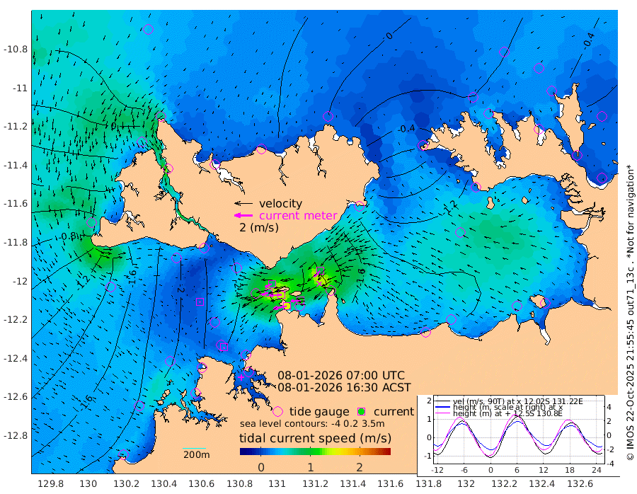 152cm/s -101T +4cm/s rms + 6cm/s 51T. Darwin_C1 52m 108cm/s -91T +4cm/s rms + 7cm/s -161T. Darwin_CW1 22m 76cm/s -106T +4cm/s rms + 8cm/s 61T. Darwin_CW2 34m 90cm/s -135T +3cm/s rms + 9cm/s 98T. Darwin_CW3 22m 135cm/s -91T +5cm/s rms + 7cm/s 88T. Darwin_C3 56m 79cm/s -116T +2cm/s rms + 9cm/s -126T. Darwin_CTbW 22m 10cm/s 144T +1cm/s rms + 1cm/s -47T. DARBGF 30m 19cm/s 154T +4cm/s rms + 3cm/s 80T. NRSDAR 19m 33cm Goodrich Bank -130cm Point Jenny -128cm Native Point -148cm Fish Reef -161cm Tapa Bay -45cm Point Fawcett (Offshore) -177cm Burge Point -148cm Munkunuwa -91cm Beagle A -186cm Parsons Bank -156cm Fenton Patches -185cm Hancox Shoal Area -180cm Nightcliff -214cm Darwin -181cm Charles Point Patches -175cm Glyde Point -175cm Chambers Bay -184cm Point Stuart -164cm Cape Hotham -150cm Christine Reef -200cm West Alligator Head -197cm East Field Island -151cm Two Hills Bay -142cm Camp Point -162cm Medina Inlet South -26cm South Barlow Point 3cm St. Asaph Bay 30cm Cape Van Dieman 20cm Snake Bay 22cm Cache Point -2cm Point Jahleel (Off) -68cm Cape Don -20cm Port Essington -13cm Smith Point - West -14cm NW Peacock Island 5cm North Of Jones Shoal -1cm Peacock Island -55cm Point David -19cm D'urville Point -57cm Copeland Island -51cm One Tree Point