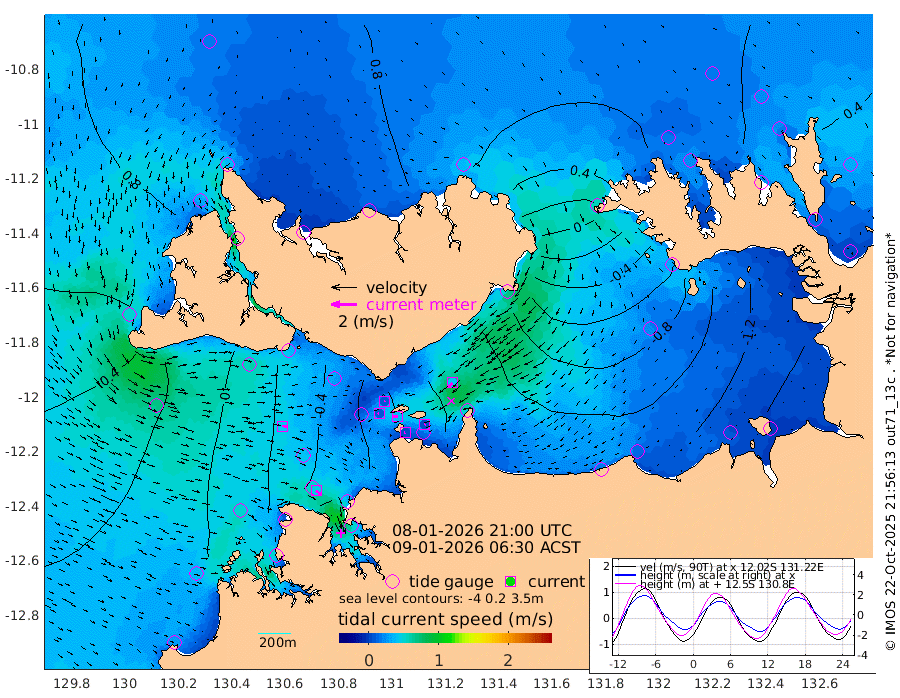 7cm/s -109T +4cm/s rms + 6cm/s 51T. Darwin_C1 52m 4cm/s 45T +4cm/s rms + 7cm/s -161T. Darwin_CW1 22m 9cm/s -107T +4cm/s rms + 8cm/s 61T. Darwin_CW2 34m 40cm/s -145T +3cm/s rms + 9cm/s 98T. Darwin_CW3 22m 36cm/s -88T +5cm/s rms + 7cm/s 88T. Darwin_C3 56m 7cm/s 56T +2cm/s rms + 9cm/s -126T. Darwin_CTbW 22m 42cm/s 98T +1cm/s rms + 1cm/s -47T. DARBGF 30m 46cm/s 128T +4cm/s rms + 3cm/s 80T. NRSDAR 19m 64cm Goodrich Bank -5cm Point Jenny 0cm Native Point -17cm Fish Reef -11cm Tapa Bay 47cm Point Fawcett (Offshore) -35cm Burge Point 2cm Munkunuwa 1cm Beagle A -31cm Parsons Bank -37cm Fenton Patches -42cm Hancox Shoal Area -38cm Nightcliff -45cm Darwin -18cm Charles Point Patches -82cm Glyde Point -144cm Chambers Bay -160cm Point Stuart -97cm Cape Hotham -130cm Christine Reef -183cm West Alligator Head -212cm East Field Island -109cm Two Hills Bay -94cm Camp Point -10cm Medina Inlet South 58cm South Barlow Point 64cm St. Asaph Bay 69cm Cape Van Dieman 70cm Snake Bay 56cm Cache Point 36cm Point Jahleel (Off) -6cm Cape Don 36cm Port Essington 34cm Smith Point - West 34cm NW Peacock Island 47cm North Of Jones Shoal 16cm Peacock Island 20cm Point David 34cm D'urville Point 14cm Copeland Island 20cm One Tree Point