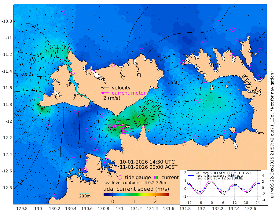 102cm/s 79T +4cm/s rms + 6cm/s 51T. Darwin_C1 52m 64cm/s 92T +4cm/s rms + 7cm/s -161T. Darwin_CW1 22m 70cm/s 72T +4cm/s rms + 8cm/s 61T. Darwin_CW2 34m 60cm/s 47T +3cm/s rms + 9cm/s 98T. Darwin_CW3 22m 115cm/s 90T +5cm/s rms + 7cm/s 88T. Darwin_C3 56m 53cm/s 65T +2cm/s rms + 9cm/s -126T. Darwin_CTbW 22m 7cm/s -17T +1cm/s rms + 1cm/s -47T. DARBGF 30m 17cm/s -34T +4cm/s rms + 3cm/s 80T. NRSDAR 19m -14cm Goodrich Bank 105cm Point Jenny 103cm Native Point 124cm Fish Reef 122cm Tapa Bay 41cm Point Fawcett (Offshore) 140cm Burge Point 110cm Munkunuwa 89cm Beagle A 142cm Parsons Bank 135cm Fenton Patches 139cm Hancox Shoal Area 142cm Nightcliff 165cm Darwin 139cm Charles Point Patches 140cm Glyde Point 141cm Chambers Bay 146cm Point Stuart 129cm Cape Hotham 124cm Christine Reef 160cm West Alligator Head 161cm East Field Island 123cm Two Hills Bay 111cm Camp Point 127cm Medina Inlet South 31cm South Barlow Point 7cm St. Asaph Bay -14cm Cape Van Dieman -5cm Snake Bay -6cm Cache Point 12cm Point Jahleel (Off) 59cm Cape Don 22cm Port Essington 21cm Smith Point - West 19cm NW Peacock Island 4cm North Of Jones Shoal 3cm Peacock Island 36cm Point David 24cm D'urville Point 38cm Copeland Island 38cm One Tree Point