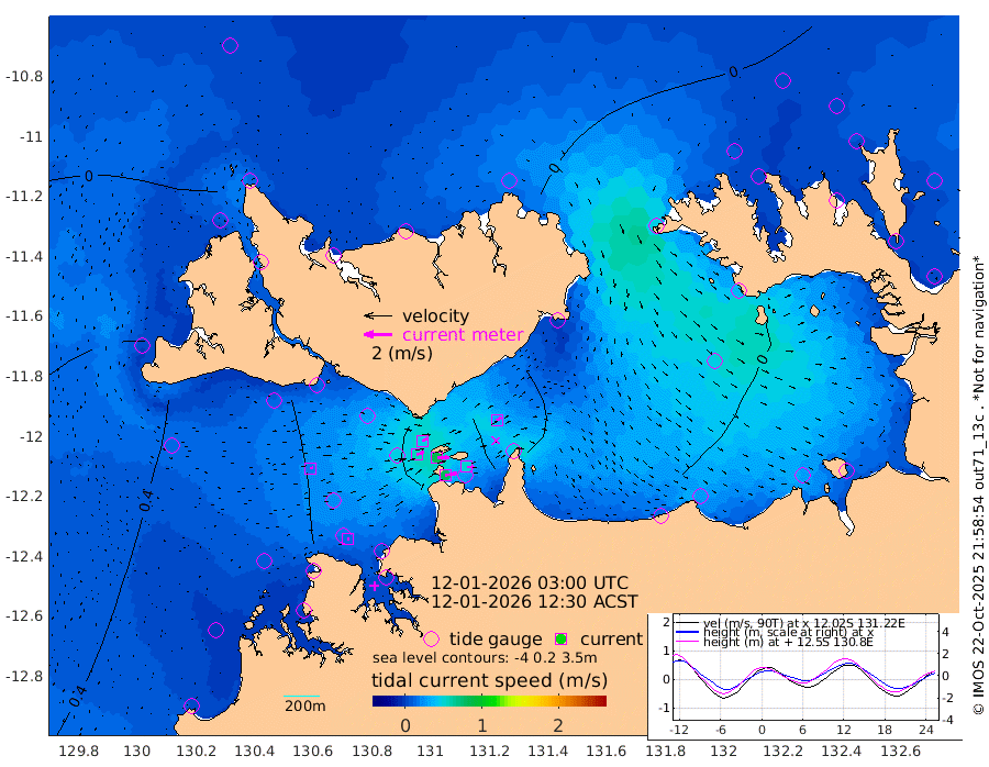 81cm/s 79T +4cm/s rms + 6cm/s 51T. Darwin_C1 52m 51cm/s 92T +4cm/s rms + 7cm/s -161T. Darwin_CW1 22m 54cm/s 72T +4cm/s rms + 8cm/s 61T. Darwin_CW2 34m 33cm/s 53T +3cm/s rms + 9cm/s 98T. Darwin_CW3 22m 83cm/s 88T +5cm/s rms + 7cm/s 88T. Darwin_C3 56m 46cm/s 66T +2cm/s rms + 9cm/s -126T. Darwin_CTbW 22m 20cm/s 85T +1cm/s rms + 1cm/s -47T. DARBGF 30m 14cm/s 105T +4cm/s rms + 3cm/s 80T. NRSDAR 19m -15cm Goodrich Bank 55cm Point Jenny 52cm Native Point 59cm Fish Reef 68cm Tapa Bay 31cm Point Fawcett (Offshore) 53cm Burge Point 66cm Munkunuwa 32cm Beagle A 69cm Parsons Bank 49cm Fenton Patches 72cm Hancox Shoal Area 74cm Nightcliff 72cm Darwin 63cm Charles Point Patches 47cm Glyde Point 43cm Chambers Bay 35cm Point Stuart 43cm Cape Hotham 28cm Christine Reef 39cm West Alligator Head 24cm East Field Island 36cm Two Hills Bay 21cm Camp Point 63cm Medina Inlet South 16cm South Barlow Point 8cm St. Asaph Bay -12cm Cape Van Dieman -9cm Snake Bay -9cm Cache Point 1cm Point Jahleel (Off) 18cm Cape Don 4cm Port Essington 9cm Smith Point - West 5cm NW Peacock Island 3cm North Of Jones Shoal 2cm Peacock Island 16cm Point David 9cm D'urville Point 18cm Copeland Island 15cm One Tree Point