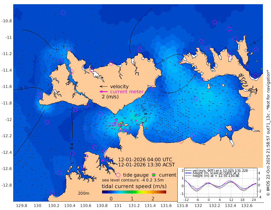 69cm/s 79T +4cm/s rms + 6cm/s 51T. Darwin_C1 52m 50cm/s 91T +4cm/s rms + 7cm/s -161T. Darwin_CW1 22m 42cm/s 73T +4cm/s rms + 8cm/s 61T. Darwin_CW2 34m 31cm/s 52T +3cm/s rms + 9cm/s 98T. Darwin_CW3 22m 71cm/s 89T +5cm/s rms + 7cm/s 88T. Darwin_C3 56m 39cm/s 66T +2cm/s rms + 9cm/s -126T. Darwin_CTbW 22m 7cm/s 69T +1cm/s rms + 1cm/s -47T. DARBGF 30m 5cm/s 2T +4cm/s rms + 3cm/s 80T. NRSDAR 19m -26cm Goodrich Bank 46cm Point Jenny 42cm Native Point 54cm Fish Reef 57cm Tapa Bay 20cm Point Fawcett (Offshore) 48cm Burge Point 49cm Munkunuwa 26cm Beagle A 58cm Parsons Bank 46cm Fenton Patches 65cm Hancox Shoal Area 67cm Nightcliff 65cm Darwin 53cm Charles Point Patches 59cm Glyde Point 75cm Chambers Bay 75cm Point Stuart 63cm Cape Hotham 58cm Christine Reef 85cm West Alligator Head 81cm East Field Island 61cm Two Hills Bay 43cm Camp Point 52cm Medina Inlet South -2cm South Barlow Point -6cm St. Asaph Bay -24cm Cape Van Dieman -24cm Snake Bay -17cm Cache Point -6cm Point Jahleel (Off) 19cm Cape Don -4cm Port Essington -1cm Smith Point - West -4cm NW Peacock Island -6cm North Of Jones Shoal -1cm Peacock Island 8cm Point David -1cm D'urville Point 12cm Copeland Island 9cm One Tree Point