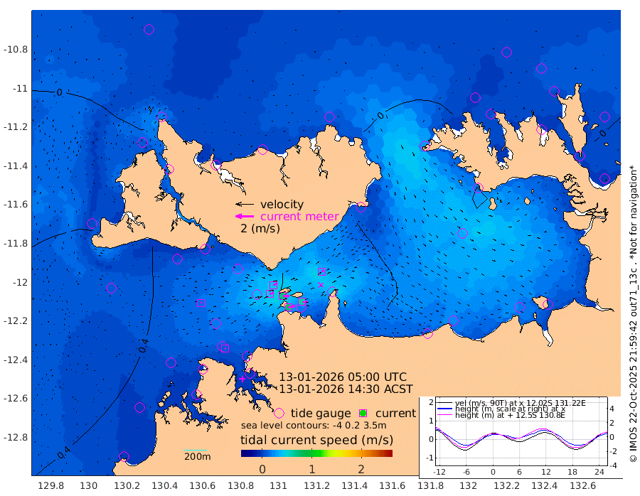 73cm/s 78T +4cm/s rms + 6cm/s 51T. Darwin_C1 52m 61cm/s 91T +4cm/s rms + 7cm/s -161T. Darwin_CW1 22m 40cm/s 74T +4cm/s rms + 8cm/s 61T. Darwin_CW2 34m 31cm/s 51T +3cm/s rms + 9cm/s 98T. Darwin_CW3 22m 69cm/s 89T +5cm/s rms + 7cm/s 88T. Darwin_C3 56m 42cm/s 66T +2cm/s rms + 9cm/s -126T. Darwin_CTbW 22m 15cm/s 82T +1cm/s rms + 1cm/s -47T. DARBGF 30m 9cm/s 100T +4cm/s rms + 3cm/s 80T. NRSDAR 19m -11cm Goodrich Bank 59cm Point Jenny 55cm Native Point 64cm Fish Reef 66cm Tapa Bay 36cm Point Fawcett (Offshore) 56cm Burge Point 57cm Munkunuwa 44cm Beagle A 58cm Parsons Bank 57cm Fenton Patches 66cm Hancox Shoal Area 72cm Nightcliff 66cm Darwin 59cm Charles Point Patches 57cm Glyde Point 64cm Chambers Bay 62cm Point Stuart 56cm Cape Hotham 51cm Christine Reef 70cm West Alligator Head 65cm East Field Island 53cm Two Hills Bay 39cm Camp Point 59cm Medina Inlet South 12cm South Barlow Point 11cm St. Asaph Bay -10cm Cape Van Dieman -11cm Snake Bay -3cm Cache Point 4cm Point Jahleel (Off) 20cm Cape Don 1cm Port Essington 5cm Smith Point - West 0cm NW Peacock Island 1cm North Of Jones Shoal 1cm Peacock Island 3cm Point David 2cm D'urville Point 6cm Copeland Island 5cm One Tree Point