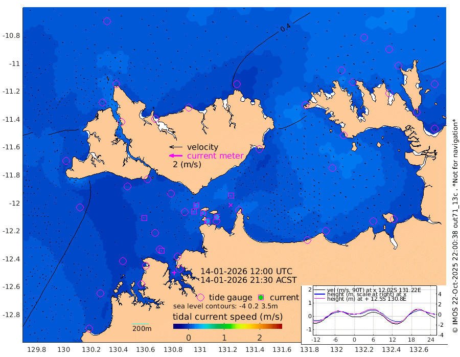 29cm/s -104T +4cm/s rms + 6cm/s 51T. Darwin_C1 52m 28cm/s -87T +4cm/s rms + 7cm/s -161T. Darwin_CW1 22m 13cm/s -111T +4cm/s rms + 8cm/s 61T. Darwin_CW2 34m 9cm/s -123T +3cm/s rms + 9cm/s 98T. Darwin_CW3 22m 16cm/s -92T +5cm/s rms + 7cm/s 88T. Darwin_C3 56m 19cm/s -114T +2cm/s rms + 9cm/s -126T. Darwin_CTbW 22m 4cm/s -77T +1cm/s rms + 1cm/s -47T. DARBGF 30m 4cm/s -81T +4cm/s rms + 3cm/s 80T. NRSDAR 19m 55cm Goodrich Bank 21cm Point Jenny 24cm Native Point 17cm Fish Reef 19cm Tapa Bay 38cm Point Fawcett (Offshore) 26cm Burge Point 16cm Munkunuwa 33cm Beagle A 15cm Parsons Bank 22cm Fenton Patches 12cm Hancox Shoal Area 14cm Nightcliff 17cm Darwin 24cm Charles Point Patches 12cm Glyde Point 3cm Chambers Bay -1cm Point Stuart 10cm Cape Hotham 9cm Christine Reef -5cm West Alligator Head -3cm East Field Island 8cm Two Hills Bay 16cm Camp Point 21cm Medina Inlet South 44cm South Barlow Point 48cm St. Asaph Bay 53cm Cape Van Dieman 56cm Snake Bay 52cm Cache Point 44cm Point Jahleel (Off) 27cm Cape Don 36cm Port Essington 35cm Smith Point - West 36cm NW Peacock Island 42cm North Of Jones Shoal 13cm Peacock Island 25cm Point David 32cm D'urville Point 20cm Copeland Island 27cm One Tree Point