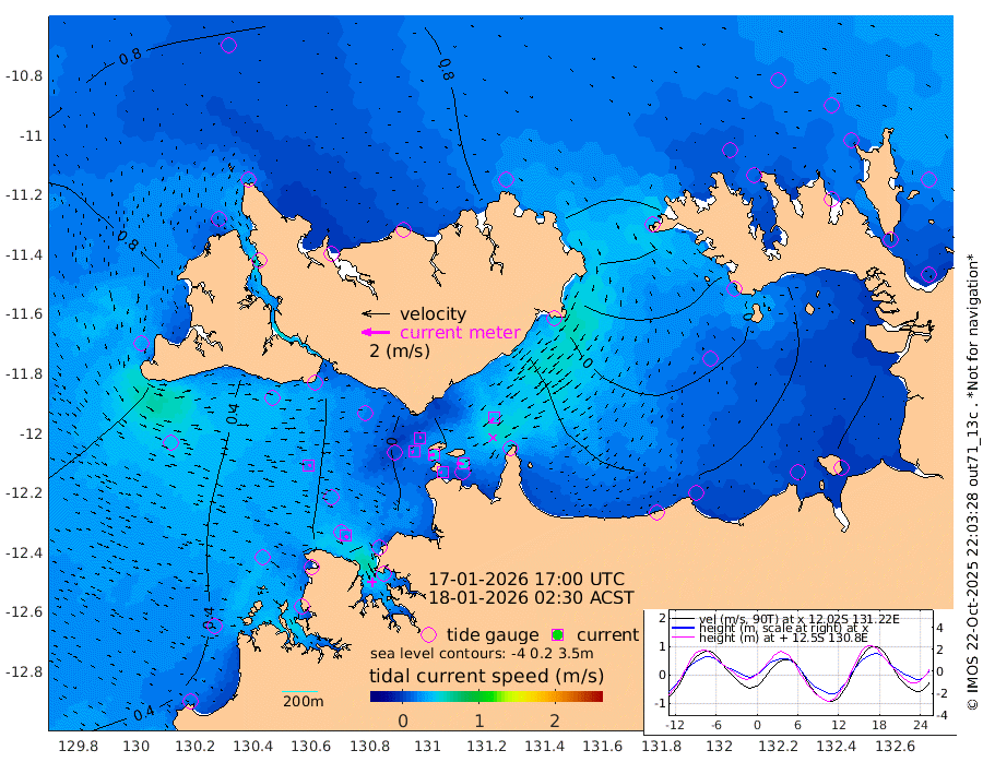 18cm/s -101T +4cm/s rms + 6cm/s 51T. Darwin_C1 52m 48cm/s -89T +4cm/s rms + 7cm/s -161T. Darwin_CW1 22m 16cm/s -108T +4cm/s rms + 8cm/s 61T. Darwin_CW2 34m 38cm/s -140T +3cm/s rms + 9cm/s 98T. Darwin_CW3 22m 45cm/s -92T +5cm/s rms + 7cm/s 88T. Darwin_C3 56m 11cm/s 54T +2cm/s rms + 9cm/s -126T. Darwin_CTbW 22m 22cm/s 100T +1cm/s rms + 1cm/s -47T. DARBGF 30m 23cm/s 134T +4cm/s rms + 3cm/s 80T. NRSDAR 19m 63cm Goodrich Bank 18cm Point Jenny 22cm Native Point 4cm Fish Reef 11cm Tapa Bay 45cm Point Fawcett (Offshore) 0cm Burge Point 4cm Munkunuwa 25cm Beagle A 0cm Parsons Bank 1cm Fenton Patches -5cm Hancox Shoal Area -4cm Nightcliff -11cm Darwin 4cm Charles Point Patches -19cm Glyde Point -49cm Chambers Bay -54cm Point Stuart -24cm Cape Hotham -37cm Christine Reef -67cm West Alligator Head -80cm East Field Island -26cm Two Hills Bay -20cm Camp Point 5cm Medina Inlet South 52cm South Barlow Point 54cm St. Asaph Bay 66cm Cape Van Dieman 70cm Snake Bay 62cm Cache Point 50cm Point Jahleel (Off) 29cm Cape Don 52cm Port Essington 53cm Smith Point - West 56cm NW Peacock Island 55cm North Of Jones Shoal 20cm Peacock Island 58cm Point David 57cm D'urville Point 53cm Copeland Island 53cm One Tree Point