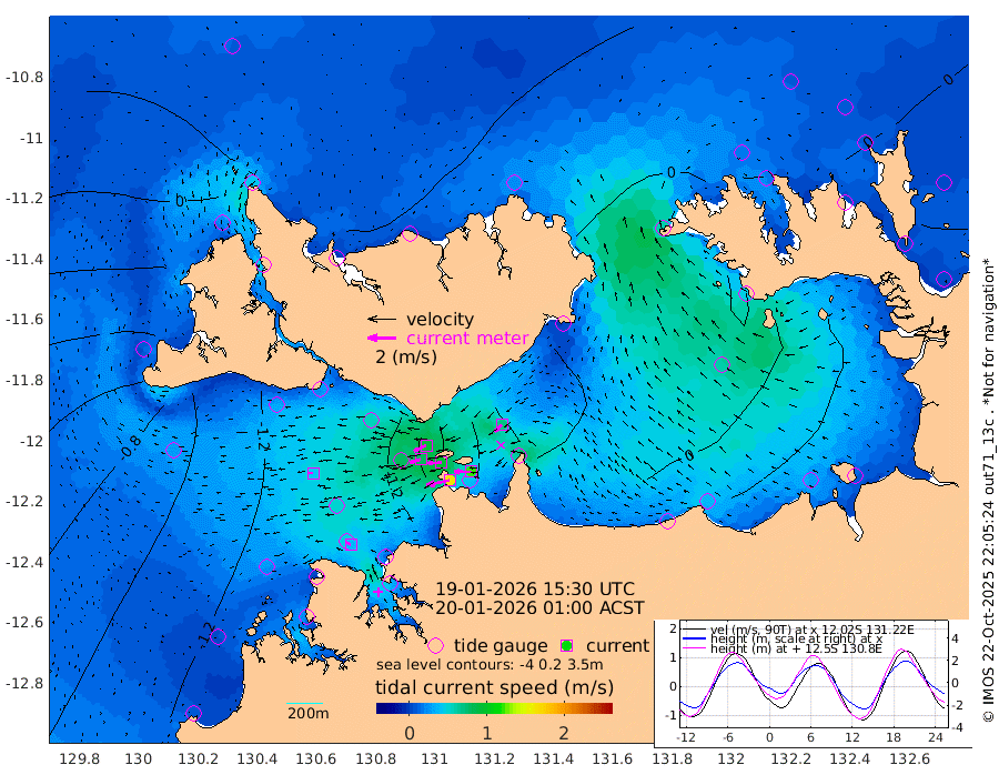 164cm/s -102T +4cm/s rms + 6cm/s 51T. Darwin_C1 52m 120cm/s -90T +4cm/s rms + 7cm/s -161T. Darwin_CW1 22m 79cm/s -108T +4cm/s rms + 8cm/s 61T. Darwin_CW2 34m 70cm/s -133T +3cm/s rms + 9cm/s 98T. Darwin_CW3 22m 95cm/s -91T +5cm/s rms + 7cm/s 88T. Darwin_C3 56m 95cm/s -115T +2cm/s rms + 9cm/s -126T. Darwin_CTbW 22m 41cm/s -91T +1cm/s rms + 1cm/s -47T. DARBGF 30m 38cm/s -68T +4cm/s rms + 3cm/s 80T. NRSDAR 19m 38cm Goodrich Bank -109cm Point Jenny -107cm Native Point -117cm Fish Reef -127cm Tapa Bay -37cm Point Fawcett (Offshore) -135cm Burge Point -133cm Munkunuwa -90cm Beagle A -139cm Parsons Bank -133cm Fenton Patches -134cm Hancox Shoal Area -154cm Nightcliff -144cm Darwin -122cm Charles Point Patches -82cm Glyde Point -39cm Chambers Bay -26cm Point Stuart -61cm Cape Hotham -35cm Christine Reef -27cm West Alligator Head -5cm East Field Island -30cm Two Hills Bay -29cm Camp Point -125cm Medina Inlet South -31cm South Barlow Point -6cm St. Asaph Bay 32cm Cape Van Dieman 27cm Snake Bay 34cm Cache Point 18cm Point Jahleel (Off) -11cm Cape Don 14cm Port Essington 8cm Smith Point - West 15cm NW Peacock Island 23cm North Of Jones Shoal 6cm Peacock Island 0cm Point David 7cm D'urville Point -4cm Copeland Island 3cm One Tree Point