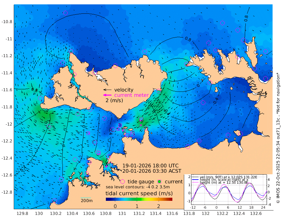 37cm/s -101T +4cm/s rms + 6cm/s 51T. Darwin_C1 52m 49cm/s -91T +4cm/s rms + 7cm/s -161T. Darwin_CW1 22m 26cm/s -107T +4cm/s rms + 8cm/s 61T. Darwin_CW2 34m 53cm/s -139T +3cm/s rms + 9cm/s 98T. Darwin_CW3 22m 61cm/s -91T +5cm/s rms + 7cm/s 88T. Darwin_C3 56m 5cm/s -99T +2cm/s rms + 9cm/s -126T. Darwin_CTbW 22m 32cm/s 101T +1cm/s rms + 1cm/s -47T. DARBGF 30m 35cm/s 134T +4cm/s rms + 3cm/s 80T. NRSDAR 19m 81cm Goodrich Bank 11cm Point Jenny 15cm Native Point -5cm Fish Reef -2cm Tapa Bay 55cm Point Fawcett (Offshore) -18cm Burge Point -5cm Munkunuwa 23cm Beagle A -21cm Parsons Bank -16cm Fenton Patches -31cm Hancox Shoal Area -35cm Nightcliff -38cm Darwin -12cm Charles Point Patches -50cm Glyde Point -95cm Chambers Bay -100cm Point Stuart -58cm Cape Hotham -78cm Christine Reef -119cm West Alligator Head -138cm East Field Island -61cm Two Hills Bay -52cm Camp Point -9cm Medina Inlet South 62cm South Barlow Point 70cm St. Asaph Bay 86cm Cape Van Dieman 84cm Snake Bay 79cm Cache Point 59cm Point Jahleel (Off) 23cm Cape Don 60cm Port Essington 60cm Smith Point - West 63cm NW Peacock Island 62cm North Of Jones Shoal 22cm Peacock Island 54cm Point David 63cm D'urville Point 48cm Copeland Island 49cm One Tree Point