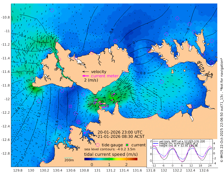 142cm/s 79T +4cm/s rms + 6cm/s 51T. Darwin_C1 52m 94cm/s 93T +4cm/s rms + 7cm/s -161T. Darwin_CW1 22m 72cm/s 71T +4cm/s rms + 8cm/s 61T. Darwin_CW2 34m 94cm/s 42T +3cm/s rms + 9cm/s 98T. Darwin_CW3 22m 110cm/s 89T +5cm/s rms + 7cm/s 88T. Darwin_C3 56m 66cm/s 65T +2cm/s rms + 9cm/s -126T. Darwin_CTbW 22m 7cm/s -40T +1cm/s rms + 1cm/s -47T. DARBGF 30m 15cm/s -30T +4cm/s rms + 3cm/s 80T. NRSDAR 19m -63cm Goodrich Bank 91cm Point Jenny 90cm Native Point 102cm Fish Reef 127cm Tapa Bay 1cm Point Fawcett (Offshore) 132cm Burge Point 110cm Munkunuwa 57cm Beagle A 150cm Parsons Bank 125cm Fenton Patches 160cm Hancox Shoal Area 158cm Nightcliff 172cm Darwin 140cm Charles Point Patches 135cm Glyde Point 132cm Chambers Bay 131cm Point Stuart 126cm Cape Hotham 111cm Christine Reef 142cm West Alligator Head 139cm East Field Island 104cm Two Hills Bay 106cm Camp Point 117cm Medina Inlet South -6cm South Barlow Point -35cm St. Asaph Bay -60cm Cape Van Dieman -49cm Snake Bay -56cm Cache Point -27cm Point Jahleel (Off) 30cm Cape Don -9cm Port Essington -10cm Smith Point - West -7cm NW Peacock Island -31cm North Of Jones Shoal -7cm Peacock Island 45cm Point David 1cm D'urville Point 51cm Copeland Island 32cm One Tree Point