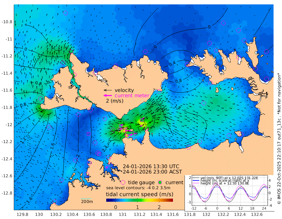 143cm/s 78T +4cm/s rms + 6cm/s 51T. Darwin_C1 52m 92cm/s 93T +4cm/s rms + 7cm/s -161T. Darwin_CW1 22m 92cm/s 72T +4cm/s rms + 8cm/s 61T. Darwin_CW2 34m 90cm/s 45T +3cm/s rms + 9cm/s 98T. Darwin_CW3 22m 152cm/s 90T +5cm/s rms + 7cm/s 88T. Darwin_C3 56m 71cm/s 65T +2cm/s rms + 9cm/s -126T. Darwin_CTbW 22m 10cm/s -30T +1cm/s rms + 1cm/s -47T. DARBGF 30m 21cm/s -30T +4cm/s rms + 3cm/s 80T. NRSDAR 19m -36cm Goodrich Bank 137cm Point Jenny 137cm Native Point 148cm Fish Reef 164cm Tapa Bay 36cm Point Fawcett (Offshore) 190cm Burge Point 153cm Munkunuwa 110cm Beagle A 191cm Parsons Bank 179cm Fenton Patches 191cm Hancox Shoal Area 201cm Nightcliff 214cm Darwin 174cm Charles Point Patches 175cm Glyde Point 173cm Chambers Bay 174cm Point Stuart 160cm Cape Hotham 160cm Christine Reef 191cm West Alligator Head 191cm East Field Island 143cm Two Hills Bay 139cm Camp Point 163cm Medina Inlet South 29cm South Barlow Point -4cm St. Asaph Bay -35cm Cape Van Dieman -23cm Snake Bay -29cm Cache Point -2cm Point Jahleel (Off) 58cm Cape Don 4cm Port Essington 4cm Smith Point - West 3cm NW Peacock Island -17cm North Of Jones Shoal -4cm Peacock Island 32cm Point David 9cm D'urville Point 35cm Copeland Island 29cm One Tree Point