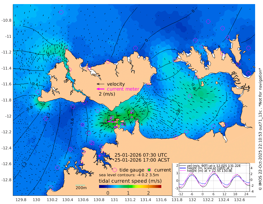 129cm/s -101T +4cm/s rms + 6cm/s 51T. Darwin_C1 52m 84cm/s -90T +4cm/s rms + 7cm/s -161T. Darwin_CW1 22m 80cm/s -107T +4cm/s rms + 8cm/s 61T. Darwin_CW2 34m 64cm/s -133T +3cm/s rms + 9cm/s 98T. Darwin_CW3 22m 127cm/s -91T +5cm/s rms + 7cm/s 88T. Darwin_C3 56m 71cm/s -115T +2cm/s rms + 9cm/s -126T. Darwin_CTbW 22m 9cm/s -126T +1cm/s rms + 1cm/s -47T. DARBGF 30m 9cm/s -144T +4cm/s rms + 3cm/s 80T. NRSDAR 19m 39cm Goodrich Bank -111cm Point Jenny -111cm Native Point -116cm Fish Reef -134cm Tapa Bay -25cm Point Fawcett (Offshore) -150cm Burge Point -133cm Munkunuwa -75cm Beagle A -161cm Parsons Bank -132cm Fenton Patches -156cm Hancox Shoal Area -156cm Nightcliff -171cm Darwin -141cm Charles Point Patches -125cm Glyde Point -110cm Chambers Bay -107cm Point Stuart -108cm Cape Hotham -101cm Christine Reef -116cm West Alligator Head -103cm East Field Island -92cm Two Hills Bay -87cm Camp Point -132cm Medina Inlet South -21cm South Barlow Point 10cm St. Asaph Bay 35cm Cape Van Dieman 28cm Snake Bay 34cm Cache Point 12cm Point Jahleel (Off) -42cm Cape Don -3cm Port Essington -2cm Smith Point - West -2cm NW Peacock Island 19cm North Of Jones Shoal 4cm Peacock Island -34cm Point David -9cm D'urville Point -37cm Copeland Island -28cm One Tree Point