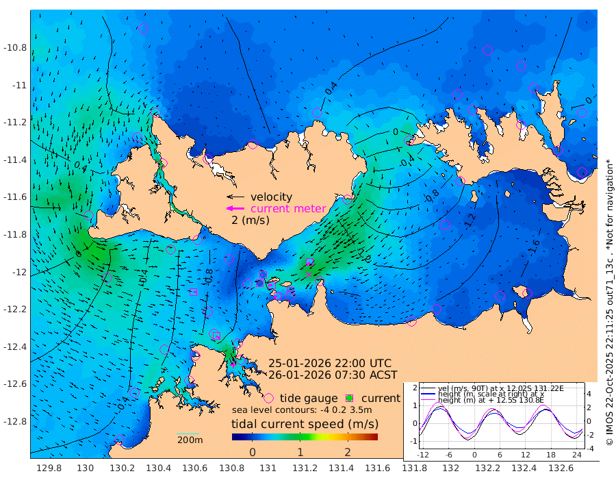 33cm/s -102T +4cm/s rms + 6cm/s 51T. Darwin_C1 52m 24cm/s -92T +4cm/s rms + 7cm/s -161T. Darwin_CW1 22m 8cm/s -101T +4cm/s rms + 8cm/s 61T. Darwin_CW2 34m 47cm/s -143T +3cm/s rms + 9cm/s 98T. Darwin_CW3 22m 40cm/s -87T +5cm/s rms + 7cm/s 88T. Darwin_C3 56m 15cm/s -115T +2cm/s rms + 9cm/s -126T. Darwin_CTbW 22m 44cm/s 98T +1cm/s rms + 1cm/s -47T. DARBGF 30m 52cm/s 128T +4cm/s rms + 3cm/s 80T. NRSDAR 19m 48cm Goodrich Bank -28cm Point Jenny -25cm Native Point -31cm Fish Reef -40cm Tapa Bay 30cm Point Fawcett (Offshore) -54cm Burge Point -9cm Munkunuwa -19cm Beagle A -51cm Parsons Bank -61cm Fenton Patches -73cm Hancox Shoal Area -74cm Nightcliff -72cm Darwin -46cm Charles Point Patches -110cm Glyde Point -171cm Chambers Bay -184cm Point Stuart -122cm Cape Hotham -158cm Christine Reef -207cm West Alligator Head -238cm East Field Island -132cm Two Hills Bay -126cm Camp Point -29cm Medina Inlet South 42cm South Barlow Point 48cm St. Asaph Bay 53cm Cape Van Dieman 49cm Snake Bay 39cm Cache Point 18cm Point Jahleel (Off) -26cm Cape Don 20cm Port Essington 17cm Smith Point - West 13cm NW Peacock Island 28cm North Of Jones Shoal 9cm Peacock Island -11cm Point David 13cm D'urville Point -16cm Copeland Island -7cm One Tree Point