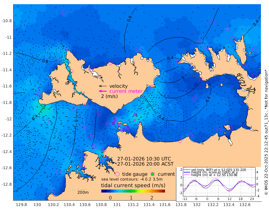 34cm/s -102T +4cm/s rms + 6cm/s 51T. Darwin_C1 52m 20cm/s -86T +4cm/s rms + 7cm/s -161T. Darwin_CW1 22m 13cm/s -113T +4cm/s rms + 8cm/s 61T. Darwin_CW2 34m 25cm/s -131T +3cm/s rms + 9cm/s 98T. Darwin_CW3 22m 26cm/s -90T +5cm/s rms + 7cm/s 88T. Darwin_C3 56m 19cm/s -115T +2cm/s rms + 9cm/s -126T. Darwin_CTbW 22m 23cm/s 96T +1cm/s rms + 1cm/s -47T. DARBGF 30m 26cm/s 131T +4cm/s rms + 3cm/s 80T. NRSDAR 19m 86cm Goodrich Bank 20cm Point Jenny 23cm Native Point 23cm Fish Reef 14cm Tapa Bay 68cm Point Fawcett (Offshore) 8cm Burge Point 14cm Munkunuwa 44cm Beagle A -3cm Parsons Bank 13cm Fenton Patches -9cm Hancox Shoal Area -6cm Nightcliff 1cm Darwin 24cm Charles Point Patches -21cm Glyde Point -58cm Chambers Bay -69cm Point Stuart -30cm Cape Hotham -53cm Christine Reef -82cm West Alligator Head -90cm East Field Island -37cm Two Hills Bay -27cm Camp Point 21cm Medina Inlet South 74cm South Barlow Point 82cm St. Asaph Bay 86cm Cape Van Dieman 87cm Snake Bay 82cm Cache Point 64cm Point Jahleel (Off) 26cm Cape Don 58cm Port Essington 56cm Smith Point - West 55cm NW Peacock Island 68cm North Of Jones Shoal 22cm Peacock Island 28cm Point David 52cm D'urville Point 22cm Copeland Island 34cm One Tree Point