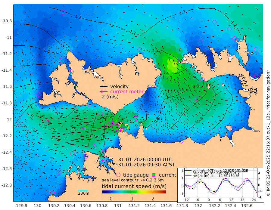 188cm/s -102T +4cm/s rms + 6cm/s 51T. Darwin_C1 52m 129cm/s -89T +4cm/s rms + 7cm/s -161T. Darwin_CW1 22m 96cm/s -107T +4cm/s rms + 8cm/s 61T. Darwin_CW2 34m 74cm/s -129T +3cm/s rms + 9cm/s 98T. Darwin_CW3 22m 126cm/s -91T +5cm/s rms + 7cm/s 88T. Darwin_C3 56m 117cm/s -115T +2cm/s rms + 9cm/s -126T. Darwin_CTbW 22m 66cm/s -93T +1cm/s rms + 1cm/s -47T. DARBGF 30m 54cm/s -61T +4cm/s rms + 3cm/s 80T. NRSDAR 19m -97cm Goodrich Bank -235cm Point Jenny -233cm Native Point -238cm Fish Reef -240cm Tapa Bay -190cm Point Fawcett (Offshore) -246cm Burge Point -222cm Munkunuwa -223cm Beagle A -227cm Parsons Bank -238cm Fenton Patches -215cm Hancox Shoal Area -235cm Nightcliff -240cm Darwin -243cm Charles Point Patches -162cm Glyde Point -90cm Chambers Bay -76cm Point Stuart -128cm Cape Hotham -92cm Christine Reef -71cm West Alligator Head -40cm East Field Island -100cm Two Hills Bay -97cm Camp Point -235cm Medina Inlet South -164cm South Barlow Point -144cm St. Asaph Bay -105cm Cape Van Dieman -108cm Snake Bay -110cm Cache Point -106cm Point Jahleel (Off) -122cm Cape Don -108cm Port Essington -110cm Smith Point - West -102cm NW Peacock Island -99cm North Of Jones Shoal -35cm Peacock Island -94cm Point David -107cm D'urville Point -89cm Copeland Island -99cm One Tree Point