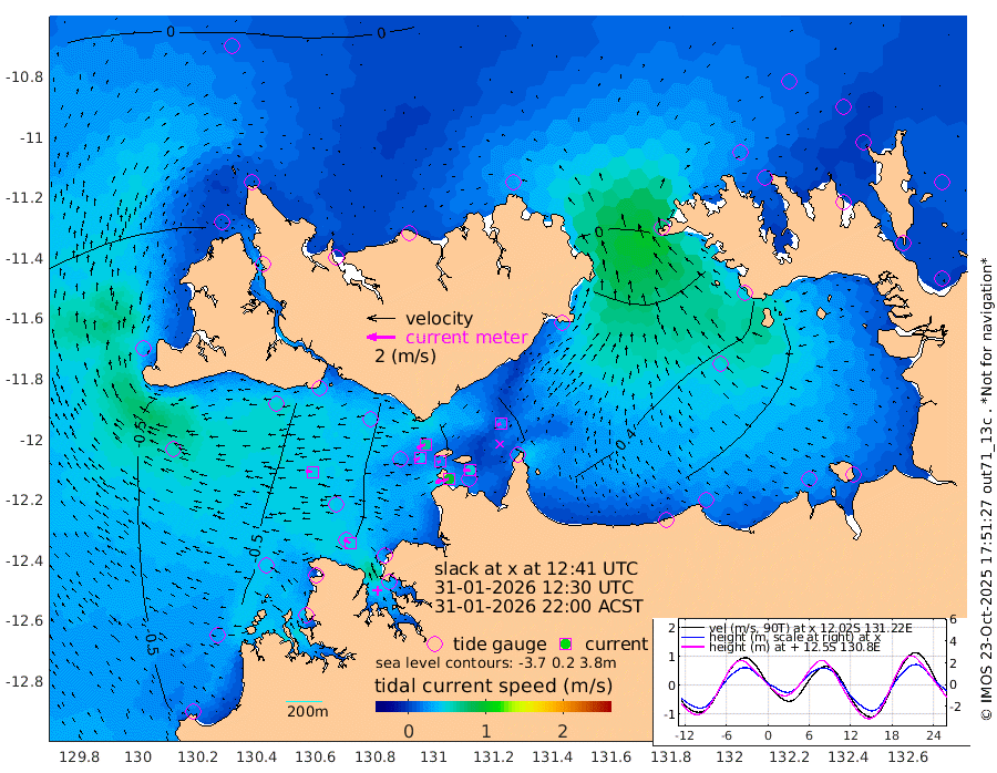 97cm/s -103T +4cm/s rms + 6cm/s 51T. Darwin_C1 52m 49cm/s -87T +4cm/s rms + 7cm/s -161T. Darwin_CW1 22m 42cm/s -111T +4cm/s rms + 8cm/s 61T. Darwin_CW2 34m 24cm/s -115T +3cm/s rms + 9cm/s 98T. Darwin_CW3 22m 23cm/s -96T +5cm/s rms + 7cm/s 88T. Darwin_C3 56m 64cm/s -116T +2cm/s rms + 9cm/s -126T. Darwin_CTbW 22m 47cm/s -86T +1cm/s rms + 1cm/s -47T. DARBGF 30m 47cm/s -58T +4cm/s rms + 3cm/s 80T. NRSDAR 19m 14cm Goodrich Bank -48cm Point Jenny -47cm Native Point -54cm Fish Reef -49cm Tapa Bay -26cm Point Fawcett (Offshore) -44cm Burge Point -64cm Munkunuwa -44cm Beagle A -52cm Parsons Bank -48cm Fenton Patches -37cm Hancox Shoal Area -43cm Nightcliff -36cm Darwin -32cm Charles Point Patches 2cm Glyde Point 55cm Chambers Bay 55cm Point Stuart 15cm Cape Hotham 51cm Christine Reef 64cm West Alligator Head 92cm East Field Island 33cm Two Hills Bay 45cm Camp Point -45cm Medina Inlet South -24cm South Barlow Point -11cm St. Asaph Bay 6cm Cape Van Dieman 7cm Snake Bay 10cm Cache Point 8cm Point Jahleel (Off) 6cm Cape Don 1cm Port Essington -5cm Smith Point - West 0cm NW Peacock Island 12cm North Of Jones Shoal 2cm Peacock Island -7cm Point David -8cm D'urville Point -9cm Copeland Island 0cm One Tree Point