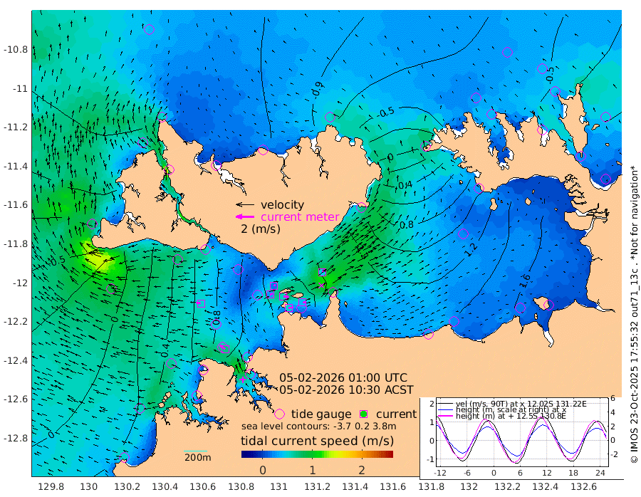 50cm/s 81T +4cm/s rms + 6cm/s 51T. Darwin_C1 52m 39cm/s 88T +4cm/s rms + 7cm/s -161T. Darwin_CW1 22m 28cm/s 68T +4cm/s rms + 8cm/s 61T. Darwin_CW2 34m 48cm/s 42T +3cm/s rms + 9cm/s 98T. Darwin_CW3 22m 57cm/s 90T +5cm/s rms + 7cm/s 88T. Darwin_C3 56m 21cm/s 66T +2cm/s rms + 9cm/s -126T. Darwin_CTbW 22m 52cm/s -82T +1cm/s rms + 1cm/s -47T. DARBGF 30m 69cm/s -53T +4cm/s rms + 3cm/s 80T. NRSDAR 19m -100cm Goodrich Bank 6cm Point Jenny 0cm Native Point 23cm Fish Reef 28cm Tapa Bay -66cm Point Fawcett (Offshore) 51cm Burge Point 14cm Munkunuwa -24cm Beagle A 66cm Parsons Bank 38cm Fenton Patches 79cm Hancox Shoal Area 63cm Nightcliff 84cm Darwin 48cm Charles Point Patches 109cm Glyde Point 172cm Chambers Bay 194cm Point Stuart 128cm Cape Hotham 149cm Christine Reef 219cm West Alligator Head 243cm East Field Island 133cm Two Hills Bay 118cm Camp Point 27cm Medina Inlet South -79cm South Barlow Point -94cm St. Asaph Bay -103cm Cape Van Dieman -99cm Snake Bay -88cm Cache Point -58cm Point Jahleel (Off) 10cm Cape Don -40cm Port Essington -44cm Smith Point - West -38cm NW Peacock Island -58cm North Of Jones Shoal -17cm Peacock Island 9cm Point David -34cm D'urville Point 18cm Copeland Island 3cm One Tree Point