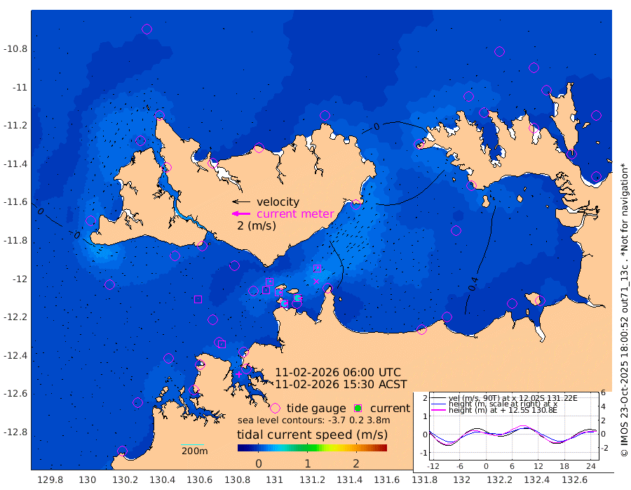 37cm/s 80T +4cm/s rms + 6cm/s 51T. Darwin_C1 52m 52cm/s 92T +4cm/s rms + 7cm/s -161T. Darwin_CW1 22m 6cm/s 88T +4cm/s rms + 8cm/s 61T. Darwin_CW2 34m 23cm/s 38T +3cm/s rms + 9cm/s 98T. Darwin_CW3 22m 25cm/s 93T +5cm/s rms + 7cm/s 88T. Darwin_C3 56m 19cm/s 69T +2cm/s rms + 9cm/s -126T. Darwin_CTbW 22m 1cm/s -37T +1cm/s rms + 1cm/s -47T. DARBGF 30m 3cm/s -61T +4cm/s rms + 3cm/s 80T. NRSDAR 19m 0cm Goodrich Bank 30cm Point Jenny 26cm Native Point 34cm Fish Reef 29cm Tapa Bay 25cm Point Fawcett (Offshore) 24cm Burge Point 14cm Munkunuwa 28cm Beagle A 13cm Parsons Bank 30cm Fenton Patches 24cm Hancox Shoal Area 29cm Nightcliff 24cm Darwin 25cm Charles Point Patches 42cm Glyde Point 64cm Chambers Bay 71cm Point Stuart 47cm Cape Hotham 56cm Christine Reef 81cm West Alligator Head 92cm East Field Island 52cm Two Hills Bay 45cm Camp Point 23cm Medina Inlet South 0cm South Barlow Point 9cm St. Asaph Bay -1cm Cape Van Dieman -6cm Snake Bay 7cm Cache Point 8cm Point Jahleel (Off) 15cm Cape Don -1cm Port Essington 0cm Smith Point - West -4cm NW Peacock Island 2cm North Of Jones Shoal 0cm Peacock Island -10cm Point David -6cm D'urville Point -10cm Copeland Island -6cm One Tree Point