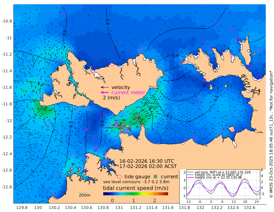 78cm/s -101T +4cm/s rms + 6cm/s 51T. Darwin_C1 52m 84cm/s -92T +4cm/s rms + 7cm/s -161T. Darwin_CW1 22m 47cm/s -107T +4cm/s rms + 8cm/s 61T. Darwin_CW2 34m 61cm/s -137T +3cm/s rms + 9cm/s 98T. Darwin_CW3 22m 86cm/s -92T +5cm/s rms + 7cm/s 88T. Darwin_C3 56m 33cm/s -114T +2cm/s rms + 9cm/s -126T. Darwin_CTbW 22m 14cm/s 115T +1cm/s rms + 1cm/s -47T. DARBGF 30m 18cm/s 146T +4cm/s rms + 3cm/s 80T. NRSDAR 19m 67cm Goodrich Bank -45cm Point Jenny -43cm Native Point -64cm Fish Reef -65cm Tapa Bay 16cm Point Fawcett (Offshore) -84cm Burge Point -67cm Munkunuwa -31cm Beagle A -83cm Parsons Bank -79cm Fenton Patches -87cm Hancox Shoal Area -99cm Nightcliff -104cm Darwin -77cm Charles Point Patches -86cm Glyde Point -99cm Chambers Bay -99cm Point Stuart -81cm Cape Hotham -82cm Christine Reef -115cm West Alligator Head -122cm East Field Island -69cm Two Hills Bay -67cm Camp Point -71cm Medina Inlet South 25cm South Barlow Point 41cm St. Asaph Bay 68cm Cape Van Dieman 64cm Snake Bay 64cm Cache Point 43cm Point Jahleel (Off) 4cm Cape Don 43cm Port Essington 44cm Smith Point - West 47cm NW Peacock Island 50cm North Of Jones Shoal 17cm Peacock Island 36cm Point David 45cm D'urville Point 30cm Copeland Island 32cm One Tree Point