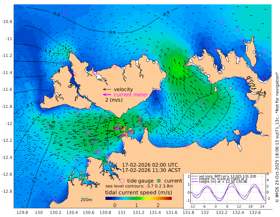 194cm/s -103T +4cm/s rms + 6cm/s 51T. Darwin_C1 52m 136cm/s -89T +4cm/s rms + 7cm/s -161T. Darwin_CW1 22m 109cm/s -108T +4cm/s rms + 8cm/s 61T. Darwin_CW2 34m 86cm/s -130T +3cm/s rms + 9cm/s 98T. Darwin_CW3 22m 136cm/s -91T +5cm/s rms + 7cm/s 88T. Darwin_C3 56m 115cm/s -115T +2cm/s rms + 9cm/s -126T. Darwin_CTbW 22m 64cm/s -93T +1cm/s rms + 1cm/s -47T. DARBGF 30m 54cm/s -64T +4cm/s rms + 3cm/s 80T. NRSDAR 19m -69cm Goodrich Bank -241cm Point Jenny -243cm Native Point -238cm Fish Reef -259cm Tapa Bay -163cm Point Fawcett (Offshore) -263cm Burge Point -238cm Munkunuwa -222cm Beagle A -246cm Parsons Bank -258cm Fenton Patches -240cm Hancox Shoal Area -262cm Nightcliff -266cm Darwin -263cm Charles Point Patches -170cm Glyde Point -90cm Chambers Bay -62cm Point Stuart -123cm Cape Hotham -90cm Christine Reef -55cm West Alligator Head -24cm East Field Island -83cm Two Hills Bay -100cm Camp Point -247cm Medina Inlet South -147cm South Barlow Point -120cm St. Asaph Bay -76cm Cape Van Dieman -80cm Snake Bay -74cm Cache Point -77cm Point Jahleel (Off) -101cm Cape Don -81cm Port Essington -83cm Smith Point - West -76cm NW Peacock Island -64cm North Of Jones Shoal -23cm Peacock Island -79cm Point David -83cm D'urville Point -76cm Copeland Island -77cm One Tree Point