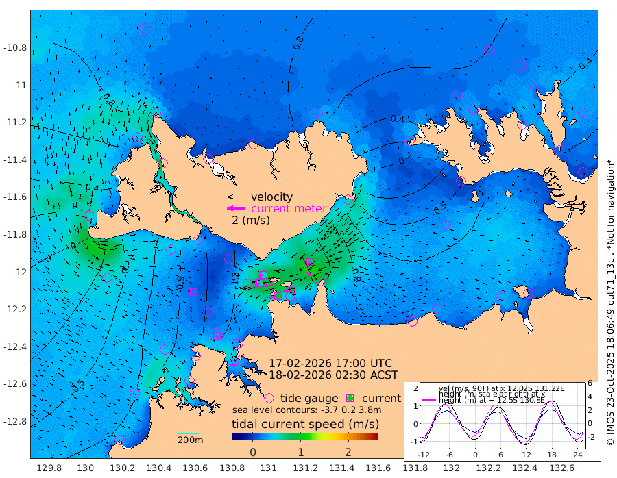 98cm/s -100T +4cm/s rms + 6cm/s 51T. Darwin_C1 52m 90cm/s -92T +4cm/s rms + 7cm/s -161T. Darwin_CW1 22m 54cm/s -107T +4cm/s rms + 8cm/s 61T. Darwin_CW2 34m 73cm/s -137T +3cm/s rms + 9cm/s 98T. Darwin_CW3 22m 98cm/s -91T +5cm/s rms + 7cm/s 88T. Darwin_C3 56m 45cm/s -115T +2cm/s rms + 9cm/s -126T. Darwin_CTbW 22m 20cm/s 111T +1cm/s rms + 1cm/s -47T. DARBGF 30m 26cm/s 142T +4cm/s rms + 3cm/s 80T. NRSDAR 19m 75cm Goodrich Bank -58cm Point Jenny -55cm Native Point -77cm Fish Reef -83cm Tapa Bay 19cm Point Fawcett (Offshore) -104cm Burge Point -81cm Munkunuwa -39cm Beagle A -106cm Parsons Bank -99cm Fenton Patches -114cm Hancox Shoal Area -125cm Nightcliff -132cm Darwin -96cm Charles Point Patches -112cm Glyde Point -131cm Chambers Bay -133cm Point Stuart -108cm Cape Hotham -112cm Christine Reef -152cm West Alligator Head -162cm East Field Island -95cm Two Hills Bay -92cm Camp Point -88cm Medina Inlet South 27cm South Barlow Point 47cm St. Asaph Bay 77cm Cape Van Dieman 69cm Snake Bay 71cm Cache Point 45cm Point Jahleel (Off) -4cm Cape Don 43cm Port Essington 44cm Smith Point - West 46cm NW Peacock Island 53cm North Of Jones Shoal 17cm Peacock Island 25cm Point David 43cm D'urville Point 19cm Copeland Island 24cm One Tree Point