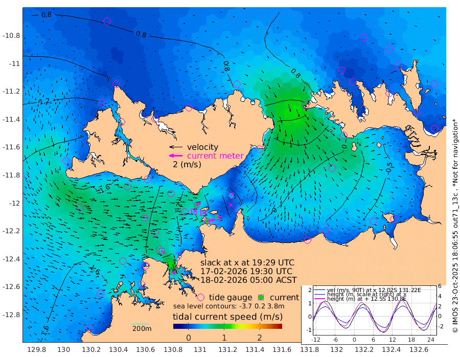 112cm/s 78T +4cm/s rms + 6cm/s 51T. Darwin_C1 52m 69cm/s 84T +4cm/s rms + 7cm/s -161T. Darwin_CW1 22m 44cm/s 75T +4cm/s rms + 8cm/s 61T. Darwin_CW2 34m 32cm/s 59T +3cm/s rms + 9cm/s 98T. Darwin_CW3 22m 36cm/s 86T +5cm/s rms + 7cm/s 88T. Darwin_C3 56m 73cm/s 62T +2cm/s rms + 9cm/s -126T. Darwin_CTbW 22m 59cm/s 92T +1cm/s rms + 1cm/s -47T. DARBGF 30m 61cm/s 121T +4cm/s rms + 3cm/s 80T. NRSDAR 19m 60cm Goodrich Bank 145cm Point Jenny 147cm Native Point 137cm Fish Reef 153cm Tapa Bay 112cm Point Fawcett (Offshore) 143cm Burge Point 145cm Munkunuwa 135cm Beagle A 141cm Parsons Bank 142cm Fenton Patches 131cm Hancox Shoal Area 140cm Nightcliff 137cm Darwin 145cm Charles Point Patches 63cm Glyde Point -18cm Chambers Bay -39cm Point Stuart 31cm Cape Hotham -12cm Christine Reef -56cm West Alligator Head -93cm East Field Island -2cm Two Hills Bay 10cm Camp Point 139cm Medina Inlet South 108cm South Barlow Point 91cm St. Asaph Bay 69cm Cape Van Dieman 71cm Snake Bay 63cm Cache Point 58cm Point Jahleel (Off) 56cm Cape Don 67cm Port Essington 70cm Smith Point - West 67cm NW Peacock Island 55cm North Of Jones Shoal 21cm Peacock Island 76cm Point David 75cm D'urville Point 74cm Copeland Island 66cm One Tree Point