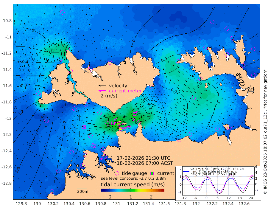 156cm/s 78T +4cm/s rms + 6cm/s 51T. Darwin_C1 52m 107cm/s 92T +4cm/s rms + 7cm/s -161T. Darwin_CW1 22m 87cm/s 72T +4cm/s rms + 8cm/s 61T. Darwin_CW2 34m 94cm/s 43T +3cm/s rms + 9cm/s 98T. Darwin_CW3 22m 126cm/s 89T +5cm/s rms + 7cm/s 88T. Darwin_C3 56m 74cm/s 65T +2cm/s rms + 9cm/s -126T. Darwin_CTbW 22m 25cm/s 80T +1cm/s rms + 1cm/s -47T. DARBGF 30m 22cm/s 102T +4cm/s rms + 3cm/s 80T. NRSDAR 19m -25cm Goodrich Bank 154cm Point Jenny 154cm Native Point 163cm Fish Reef 188cm Tapa Bay 59cm Point Fawcett (Offshore) 193cm Burge Point 170cm Munkunuwa 123cm Beagle A 200cm Parsons Bank 187cm Fenton Patches 204cm Hancox Shoal Area 211cm Nightcliff 222cm Darwin 198cm Charles Point Patches 155cm Glyde Point 117cm Chambers Bay 106cm Point Stuart 131cm Cape Hotham 101cm Christine Reef 110cm West Alligator Head 94cm East Field Island 96cm Two Hills Bay 104cm Camp Point 176cm Medina Inlet South 48cm South Barlow Point 17cm St. Asaph Bay -19cm Cape Van Dieman -10cm Snake Bay -18cm Cache Point 4cm Point Jahleel (Off) 52cm Cape Don 19cm Port Essington 19cm Smith Point - West 19cm NW Peacock Island -3cm North Of Jones Shoal 2cm Peacock Island 59cm Point David 28cm D'urville Point 64cm Copeland Island 48cm One Tree Point