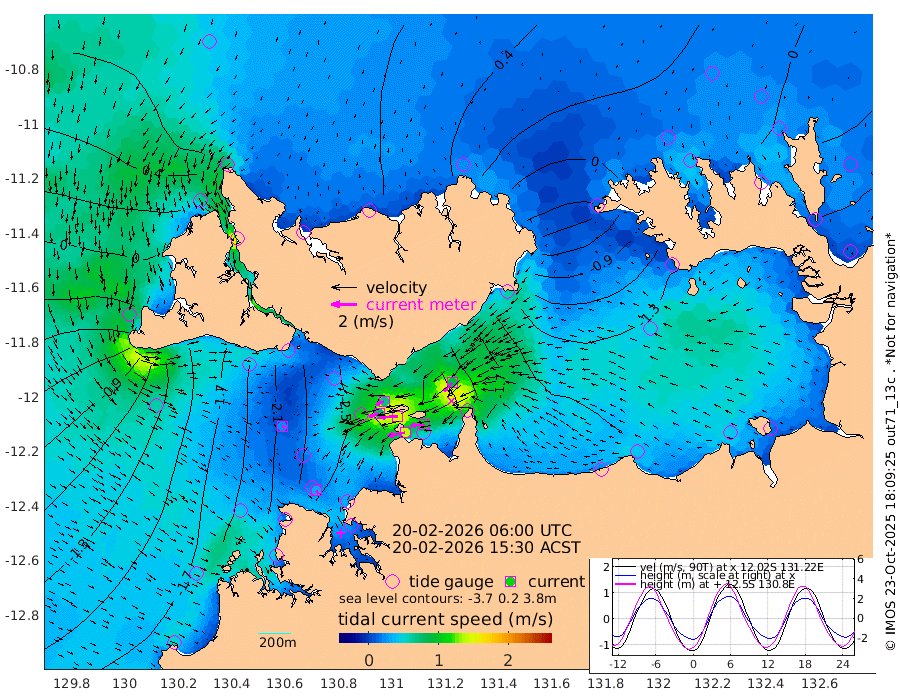 139cm/s -101T +4cm/s rms + 6cm/s 51T. Darwin_C1 52m 104cm/s -92T +4cm/s rms + 7cm/s -161T. Darwin_CW1 22m 78cm/s -106T +4cm/s rms + 8cm/s 61T. Darwin_CW2 34m 90cm/s -136T +3cm/s rms + 9cm/s 98T. Darwin_CW3 22m 143cm/s -90T +5cm/s rms + 7cm/s 88T. Darwin_C3 56m 70cm/s -116T +2cm/s rms + 9cm/s -126T. Darwin_CTbW 22m 23cm/s 116T +1cm/s rms + 1cm/s -47T. DARBGF 30m 33cm/s 143T +4cm/s rms + 3cm/s 80T. NRSDAR 19m 64cm Goodrich Bank -125cm Point Jenny -123cm Native Point -133cm Fish Reef -160cm Tapa Bay -10cm Point Fawcett (Offshore) -180cm Burge Point -139cm Munkunuwa -80cm Beagle A -189cm Parsons Bank -162cm Fenton Patches -199cm Hancox Shoal Area -197cm Nightcliff -220cm Darwin -182cm Charles Point Patches -184cm Glyde Point -200cm Chambers Bay -198cm Point Stuart -169cm Cape Hotham -181cm Christine Reef -218cm West Alligator Head -223cm East Field Island -154cm Two Hills Bay -157cm Camp Point -154cm Medina Inlet South 1cm South Barlow Point 34cm St. Asaph Bay 64cm Cape Van Dieman 55cm Snake Bay 57cm Cache Point 25cm Point Jahleel (Off) -52cm Cape Don 8cm Port Essington 12cm Smith Point - West 10cm NW Peacock Island 34cm North Of Jones Shoal 9cm Peacock Island -33cm Point David 4cm D'urville Point -39cm Copeland Island -27cm One Tree Point