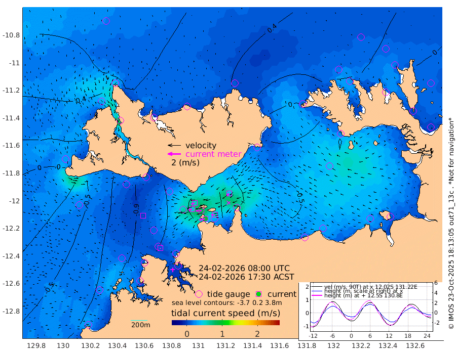96cm/s -101T +4cm/s rms + 6cm/s 51T. Darwin_C1 52m 57cm/s -90T +4cm/s rms + 7cm/s -161T. Darwin_CW1 22m 53cm/s -107T +4cm/s rms + 8cm/s 61T. Darwin_CW2 34m 44cm/s -132T +3cm/s rms + 9cm/s 98T. Darwin_CW3 22m 85cm/s -91T +5cm/s rms + 7cm/s 88T. Darwin_C3 56m 55cm/s -115T +2cm/s rms + 9cm/s -126T. Darwin_CTbW 22m 5cm/s 136T +1cm/s rms + 1cm/s -47T. DARBGF 30m 10cm/s 167T +4cm/s rms + 3cm/s 80T. NRSDAR 19m 70cm Goodrich Bank -37cm Point Jenny -36cm Native Point -44cm Fish Reef -54cm Tapa Bay 27cm Point Fawcett (Offshore) -64cm Burge Point -63cm Munkunuwa -7cm Beagle A -84cm Parsons Bank -52cm Fenton Patches -79cm Hancox Shoal Area -74cm Nightcliff -83cm Darwin -52cm Charles Point Patches -66cm Glyde Point -69cm Chambers Bay -79cm Point Stuart -64cm Cape Hotham -62cm Christine Reef -90cm West Alligator Head -82cm East Field Island -59cm Two Hills Bay -42cm Camp Point -54cm Medina Inlet South 29cm South Barlow Point 52cm St. Asaph Bay 67cm Cape Van Dieman 61cm Snake Bay 65cm Cache Point 43cm Point Jahleel (Off) -2cm Cape Don 31cm Port Essington 29cm Smith Point - West 29cm NW Peacock Island 49cm North Of Jones Shoal 14cm Peacock Island -3cm Point David 22cm D'urville Point -7cm Copeland Island 4cm One Tree Point