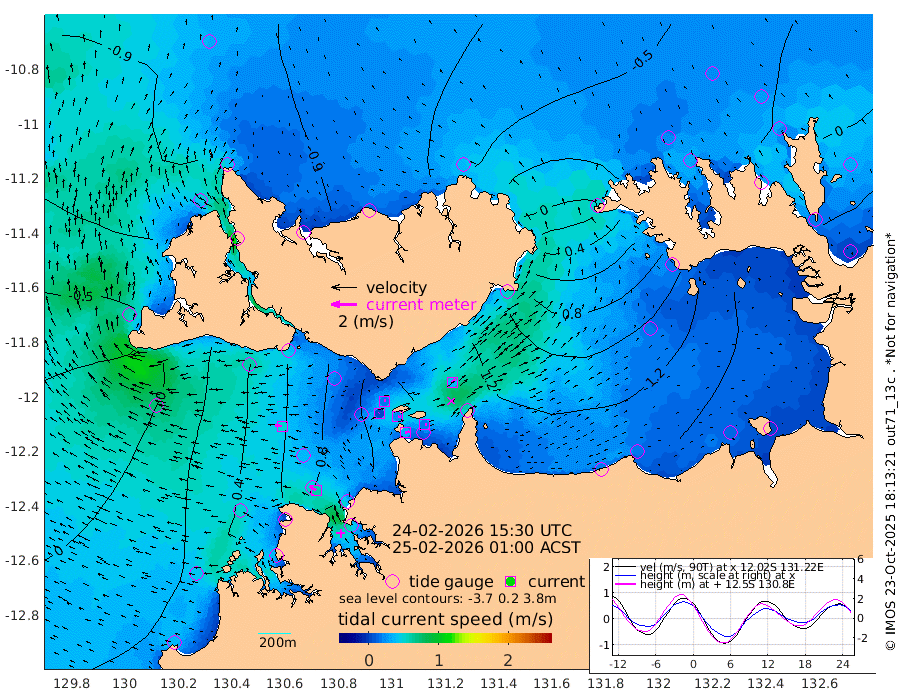 32cm/s 80T +4cm/s rms + 6cm/s 51T. Darwin_C1 52m 17cm/s 84T +4cm/s rms + 7cm/s -161T. Darwin_CW1 22m 4cm/s 42T +4cm/s rms + 8cm/s 61T. Darwin_CW2 34m 36cm/s 42T +3cm/s rms + 9cm/s 98T. Darwin_CW3 22m 22cm/s 95T +5cm/s rms + 7cm/s 88T. Darwin_C3 56m 16cm/s 62T +2cm/s rms + 9cm/s -126T. Darwin_CTbW 22m 50cm/s -85T +1cm/s rms + 1cm/s -47T. DARBGF 30m 59cm/s -54T +4cm/s rms + 3cm/s 80T. NRSDAR 19m -86cm Goodrich Bank -23cm Point Jenny -25cm Native Point -18cm Fish Reef -10cm Tapa Bay -81cm Point Fawcett (Offshore) 4cm Burge Point -27cm Munkunuwa -40cm Beagle A 17cm Parsons Bank 4cm Fenton Patches 29cm Hancox Shoal Area 18cm Nightcliff 26cm Darwin -7cm Charles Point Patches 69cm Glyde Point 126cm Chambers Bay 150cm Point Stuart 86cm Cape Hotham 114cm Christine Reef 171cm West Alligator Head 196cm East Field Island 99cm Two Hills Bay 88cm Camp Point -17cm Medina Inlet South -82cm South Barlow Point -95cm St. Asaph Bay -88cm Cape Van Dieman -82cm Snake Bay -78cm Cache Point -53cm Point Jahleel (Off) -1cm Cape Don -42cm Port Essington -42cm Smith Point - West -35cm NW Peacock Island -59cm North Of Jones Shoal -18cm Peacock Island 9cm Point David -32cm D'urville Point 15cm Copeland Island -1cm One Tree Point