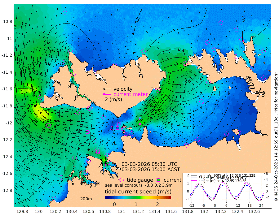 7cm/s 79T +4cm/s rms + 6cm/s 51T. Darwin_C1 52m 15cm/s -88T +4cm/s rms + 7cm/s -161T. Darwin_CW1 22m 11cm/s -108T +4cm/s rms + 8cm/s 61T. Darwin_CW2 34m 47cm/s -147T +3cm/s rms + 9cm/s 98T. Darwin_CW3 22m 55cm/s -89T +5cm/s rms + 7cm/s 88T. Darwin_C3 56m 26cm/s 61T +2cm/s rms + 9cm/s -126T. Darwin_CTbW 22m 65cm/s 98T +1cm/s rms + 1cm/s -47T. DARBGF 30m 72cm/s 127T +4cm/s rms + 3cm/s 80T. NRSDAR 19m 80cm Goodrich Bank 2cm Point Jenny 5cm Native Point -6cm Fish Reef -22cm Tapa Bay 66cm Point Fawcett (Offshore) -45cm Burge Point -3cm Munkunuwa 31cm Beagle A -51cm Parsons Bank -28cm Fenton Patches -67cm Hancox Shoal Area -50cm Nightcliff -76cm Darwin -45cm Charles Point Patches -103cm Glyde Point -167cm Chambers Bay -184cm Point Stuart -117cm Cape Hotham -147cm Christine Reef -207cm West Alligator Head -238cm East Field Island -123cm Two Hills Bay -126cm Camp Point -19cm Medina Inlet South 73cm South Barlow Point 85cm St. Asaph Bay 85cm Cape Van Dieman 80cm Snake Bay 75cm Cache Point 49cm Point Jahleel (Off) -10cm Cape Don 36cm Port Essington 45cm Smith Point - West 37cm NW Peacock Island 53cm North Of Jones Shoal 16cm Peacock Island -7cm Point David 37cm D'urville Point -13cm Copeland Island -1cm One Tree Point