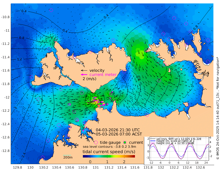 198cm/s 78T +4cm/s rms + 6cm/s 51T. Darwin_C1 52m 145cm/s 92T +4cm/s rms + 7cm/s -161T. Darwin_CW1 22m 123cm/s 73T +4cm/s rms + 8cm/s 61T. Darwin_CW2 34m 101cm/s 45T +3cm/s rms + 9cm/s 98T. Darwin_CW3 22m 182cm/s 89T +5cm/s rms + 7cm/s 88T. Darwin_C3 56m 95cm/s 66T +2cm/s rms + 9cm/s -126T. Darwin_CTbW 22m 60cm/s 85T +1cm/s rms + 1cm/s -47T. DARBGF 30m 55cm/s 113T +4cm/s rms + 3cm/s 80T. NRSDAR 19m 16cm Goodrich Bank 226cm Point Jenny 223cm Native Point 247cm Fish Reef 256cm Tapa Bay 139cm Point Fawcett (Offshore) 267cm Burge Point 253cm Munkunuwa 192cm Beagle A 269cm Parsons Bank 249cm Fenton Patches 256cm Hancox Shoal Area 269cm Nightcliff 290cm Darwin 271cm Charles Point Patches 183cm Glyde Point 107cm Chambers Bay 93cm Point Stuart 149cm Cape Hotham 89cm Christine Reef 91cm West Alligator Head 54cm East Field Island 104cm Two Hills Bay 100cm Camp Point 256cm Medina Inlet South 117cm South Barlow Point 80cm St. Asaph Bay 26cm Cape Van Dieman 35cm Snake Bay 28cm Cache Point 44cm Point Jahleel (Off) 89cm Cape Don 60cm Port Essington 59cm Smith Point - West 53cm NW Peacock Island 40cm North Of Jones Shoal 17cm Peacock Island 78cm Point David 63cm D'urville Point 80cm Copeland Island 76cm One Tree Point