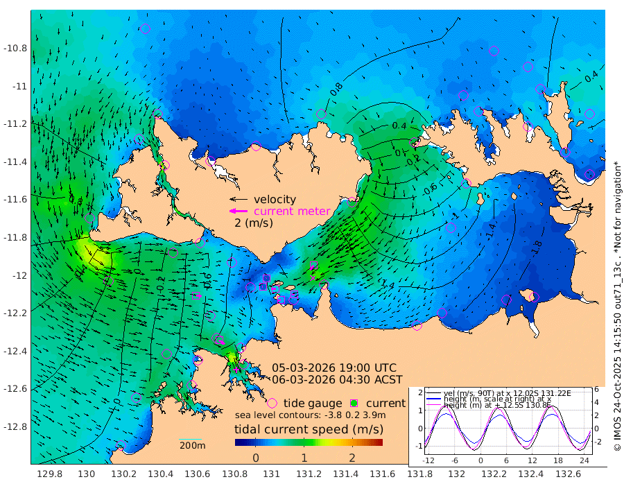 30cm/s -103T +4cm/s rms + 6cm/s 51T. Darwin_C1 52m 26cm/s -86T +4cm/s rms + 7cm/s -161T. Darwin_CW1 22m 7cm/s -105T +4cm/s rms + 8cm/s 61T. Darwin_CW2 34m 64cm/s -143T +3cm/s rms + 9cm/s 98T. Darwin_CW3 22m 48cm/s -88T +5cm/s rms + 7cm/s 88T. Darwin_C3 56m 3cm/s 36T +2cm/s rms + 9cm/s -126T. Darwin_CTbW 22m 68cm/s 97T +1cm/s rms + 1cm/s -47T. DARBGF 30m 75cm/s 128T +4cm/s rms + 3cm/s 80T. NRSDAR 19m 86cm Goodrich Bank 13cm Point Jenny 17cm Native Point -4cm Fish Reef -2cm Tapa Bay 76cm Point Fawcett (Offshore) -33cm Burge Point 14cm Munkunuwa 26cm Beagle A -36cm Parsons Bank -28cm Fenton Patches -50cm Hancox Shoal Area -37cm Nightcliff -59cm Darwin -23cm Charles Point Patches -104cm Glyde Point -176cm Chambers Bay -205cm Point Stuart -123cm Cape Hotham -162cm Christine Reef -234cm West Alligator Head -272cm East Field Island -138cm Two Hills Bay -125cm Camp Point -5cm Medina Inlet South 81cm South Barlow Point 92cm St. Asaph Bay 93cm Cape Van Dieman 89cm Snake Bay 78cm Cache Point 51cm Point Jahleel (Off) -8cm Cape Don 43cm Port Essington 46cm Smith Point - West 41cm NW Peacock Island 59cm North Of Jones Shoal 19cm Peacock Island 13cm Point David 42cm D'urville Point 6cm Copeland Island 14cm One Tree Point